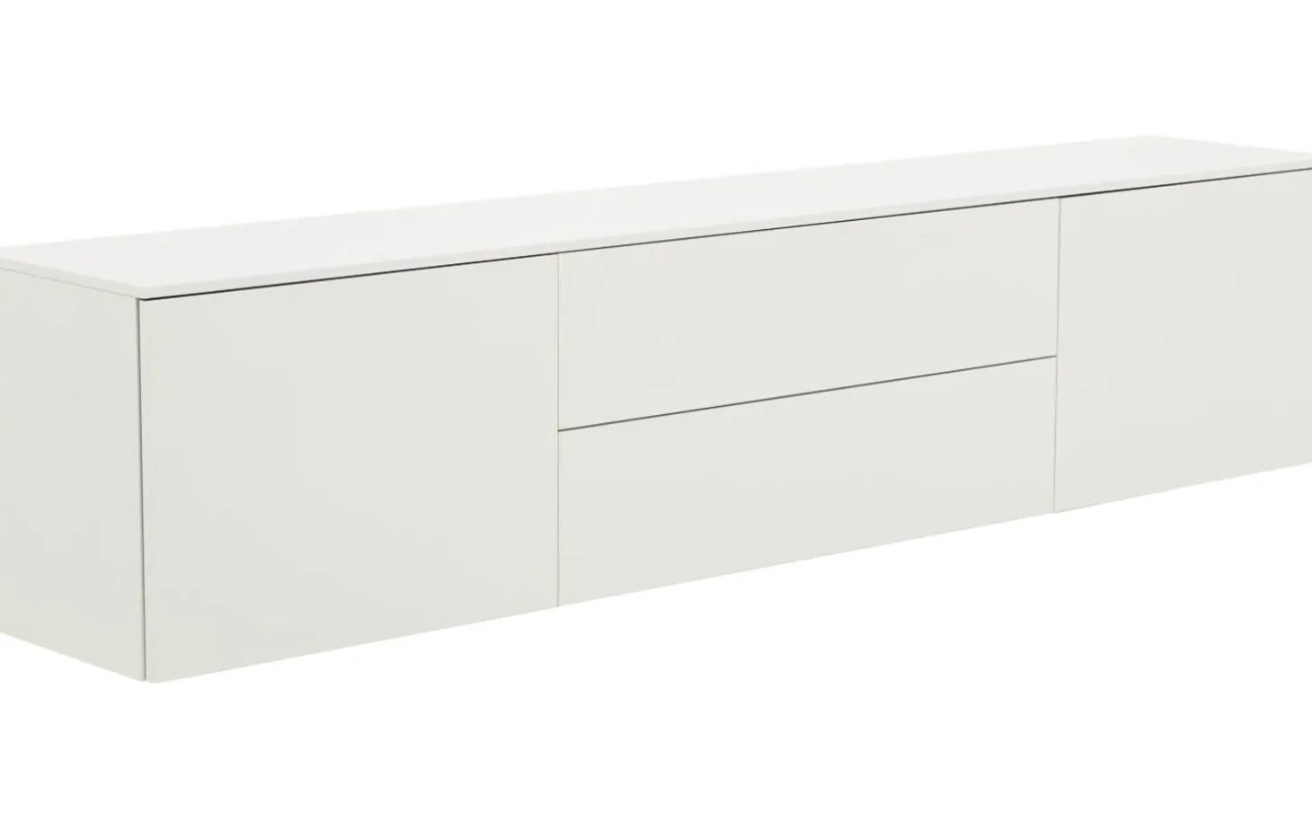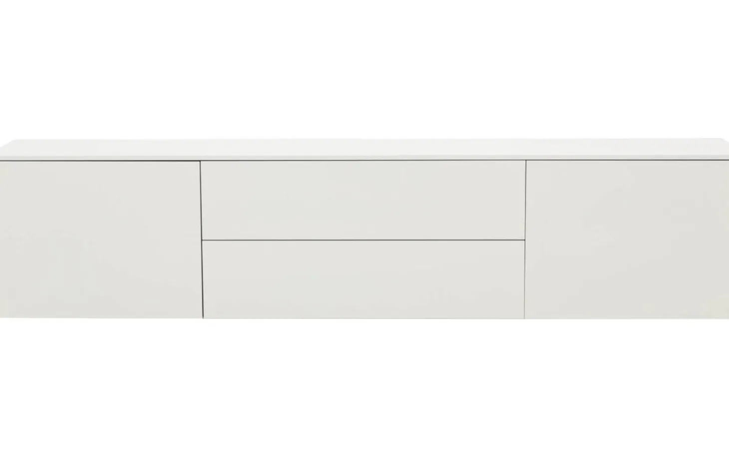 Dieses weiße Sideboard bringt Ruhe und Klarheit in Ihren Raum. Die klaren Linien und grifflosen Türen verleihen eine moderne, minimalistische Ausstrahlung. Durch die versteckten Stellfüße scheint das Möbelstück nahezu zu schweben – ein echter Blickfang, der Ihr Interieur direkt aufwertet.