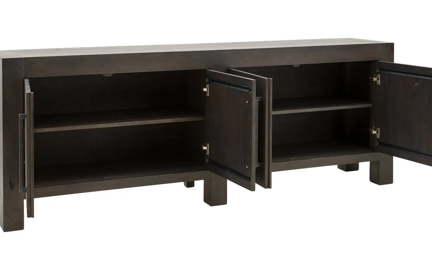 Das Soft-Close-System sorgt dafür, dass die Türen immer sanft schließen, auch bei kräftigem Zustoßen. Die soliden Metallgriffe verleihen zusätzlichen Charakter und sorgen für einfache Bedienung. Ein Sideboard, das dafür gebaut ist, Jahre zu überdauern.