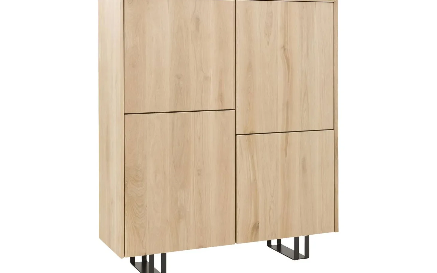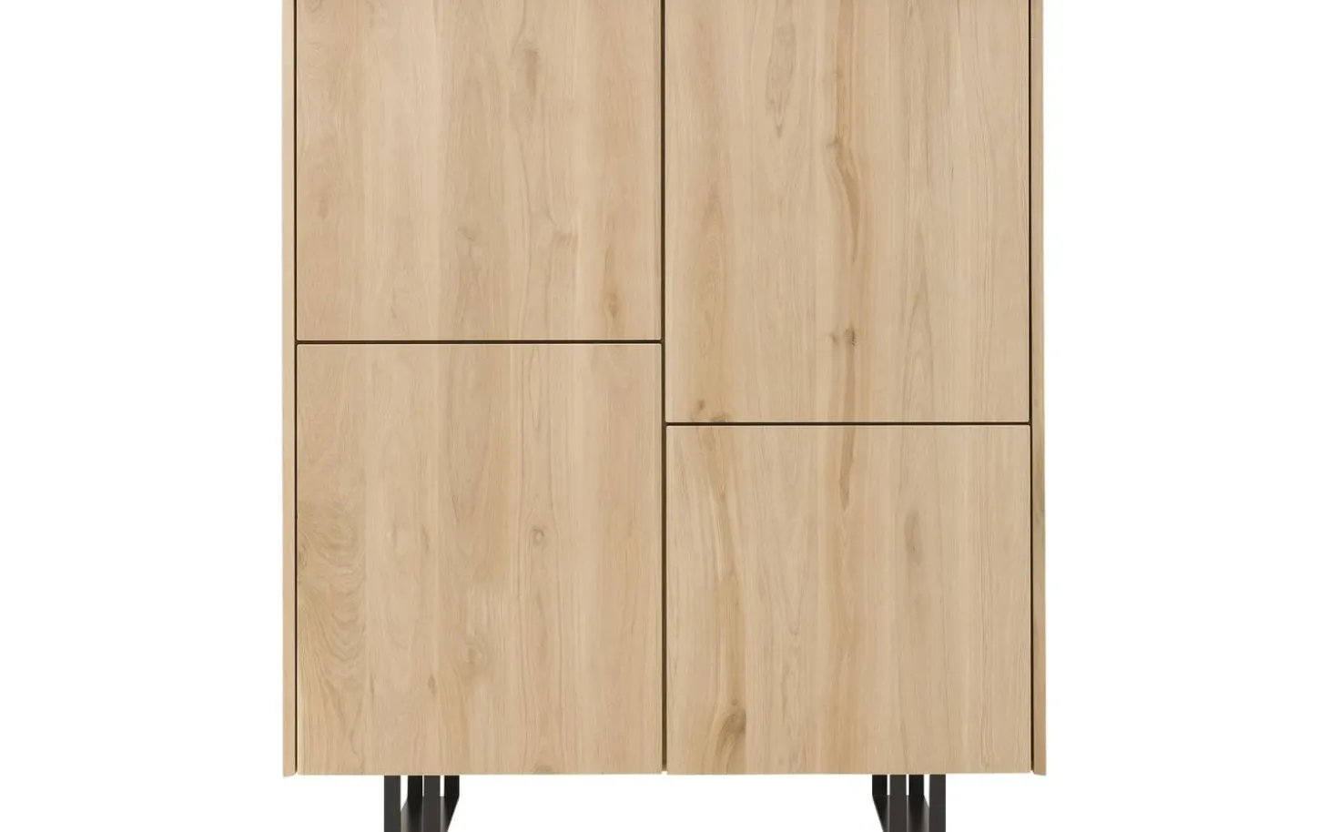 Aufbewahrungsschrank Luuk bringt skandinavische Gelassenheit in Ihr Interieur. Dieser helle Eichen-Aufbewahrungsschrank mit schwarzen Metallbeinen kombiniert natürliche Wärme mit moderner Geradlinigkeit. Das praktische Push-to-Open-System sorgt für einen cleanen Look ohne Griffe, während die vier geräumigen Fächer reichlich Stauraum für all Ihre Sachen bieten.
