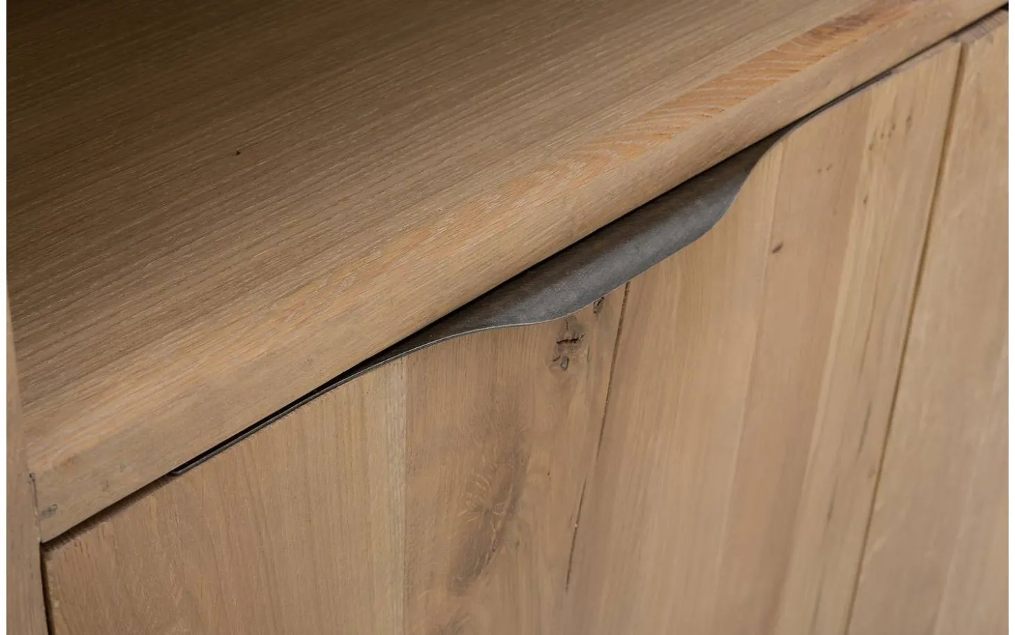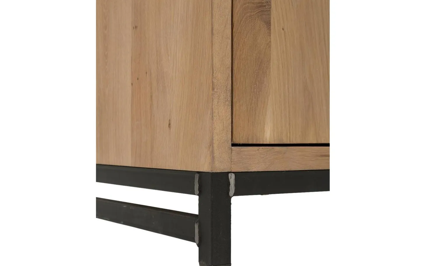 Aufbewahrungsschrank Max bringt robuste industrielle Atmosphäre in Ihr Wohnzimmer oder Schlafzimmer. Die gebürstete Eiche mit unbehandelter Oberfläche verleiht eine authentische, gelebte Ausstrahlung, die sofort Charakter hinzufügt. Mit vier geräumigen Fächern hinter Soft-Closing-Türen verstauen Sie alles ordentlich – weg mit dem Durcheinander!