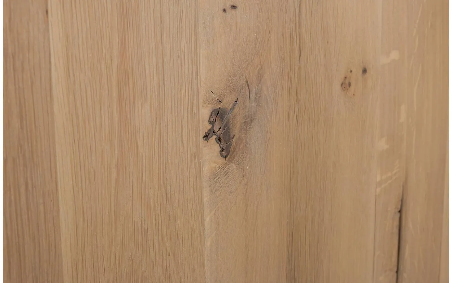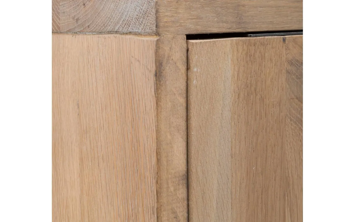 Die gebürstete Eiche fühlt sich angenehm an und zeigt die natürliche Holzstruktur in ihrer ganzen Pracht. Durch die unbehandelte Oberfläche bleibt der authentische Charakter des Holzes vollständig erhalten. Jeder Schrank ist durch die natürliche Maserung der Eiche einzigartig.