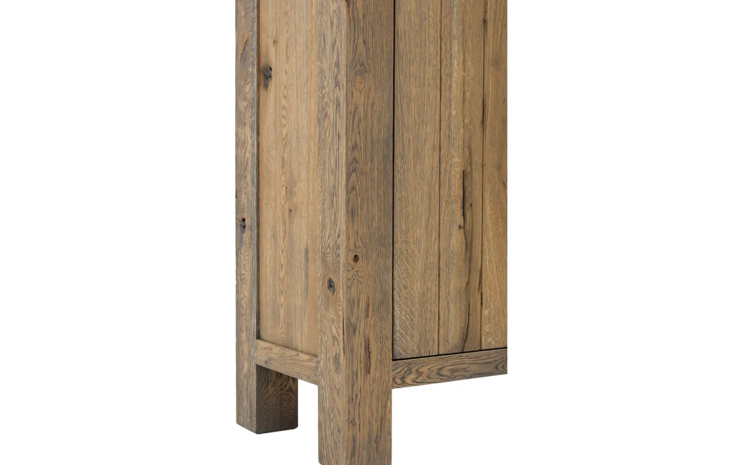 Die Öl-Veredelung schützt das Eichenholz und bewahrt die natürliche Ausstrahlung. Diese Behandlung lässt die Holzporen atmen und verleiht dem Möbel einen authentischen Charakter, der zur robusten Formgebung des Aufbewahrungsschranks Roots passt.