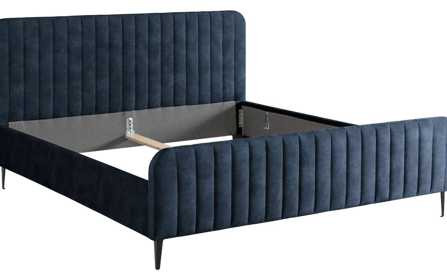 Das Bettgestell ist handwerklich gefertigt. Diese fachkundige Arbeit zeigt sich deutlich in der weichen Polsterung des Kopf- und Fußteils sowie in den handgefertigten Ziernähten. Der Bezug aus Velours verleiht dem Bettgestell zudem eine edle Optik.
