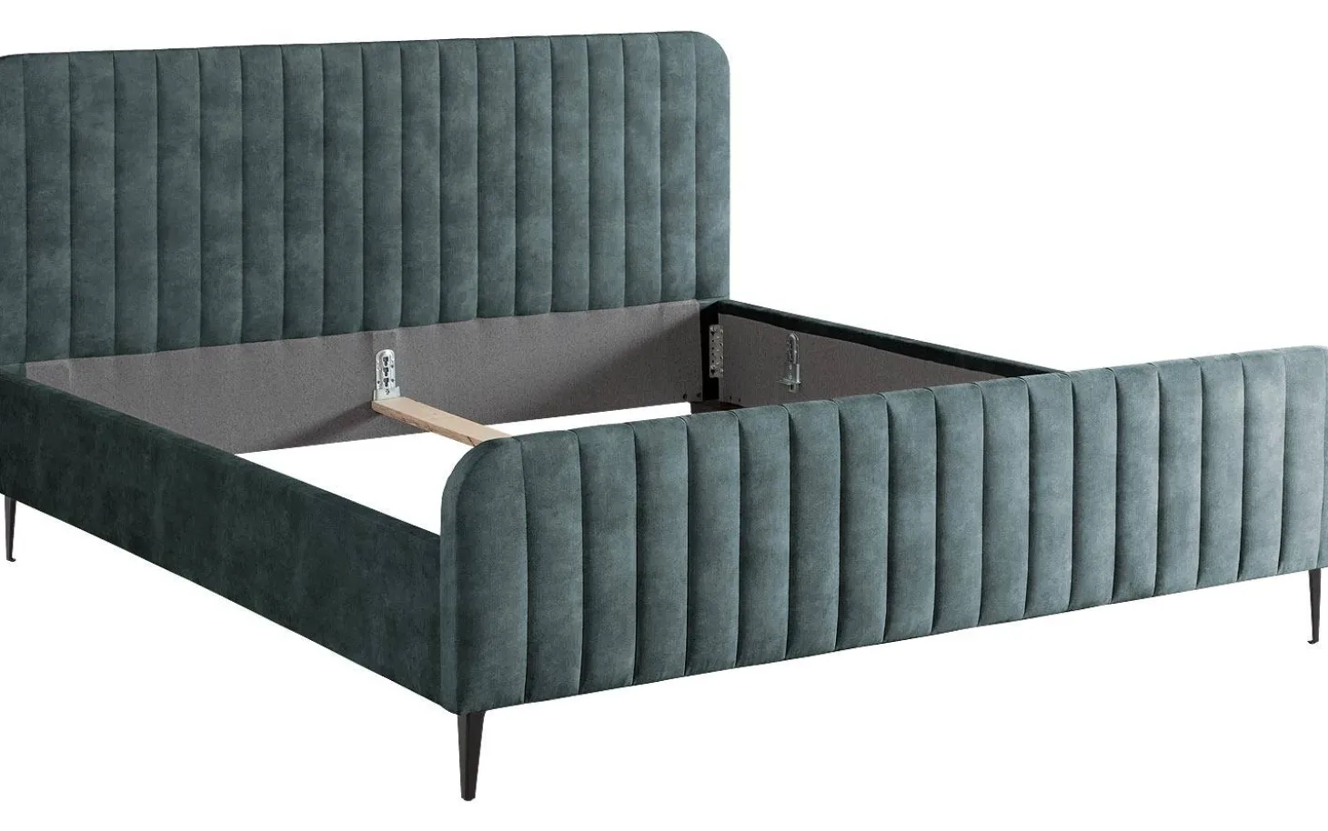 Das Bettgestell ist handwerklich gefertigt. Diese fachkundige Arbeit zeigt sich deutlich in der weichen Polsterung des Kopf- und Fußteils sowie in den handgefertigten Ziernähten. Der Bezug aus Velours verleiht dem Bettgestell zudem eine edle Optik.