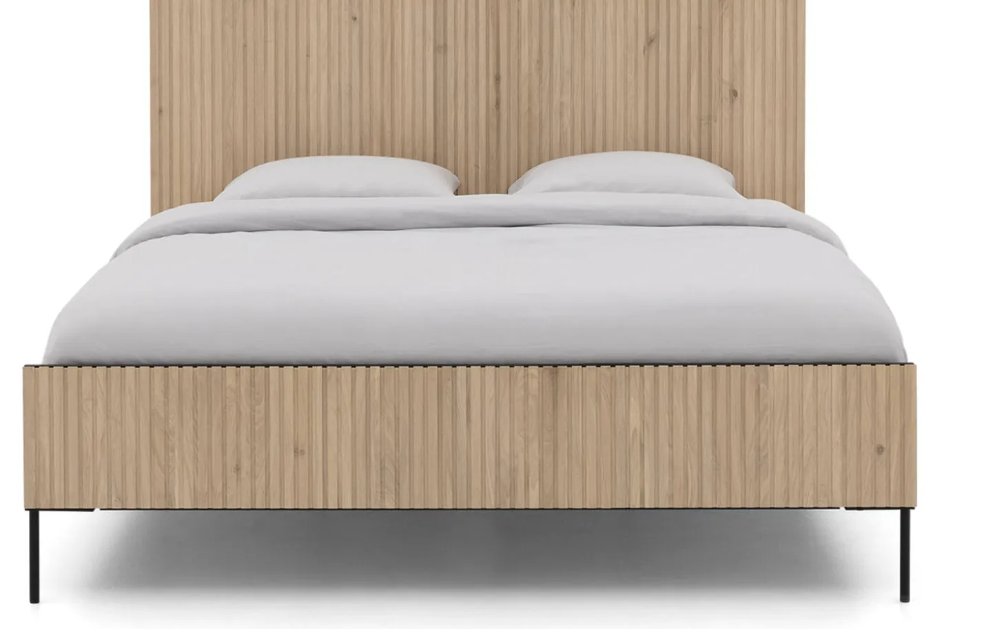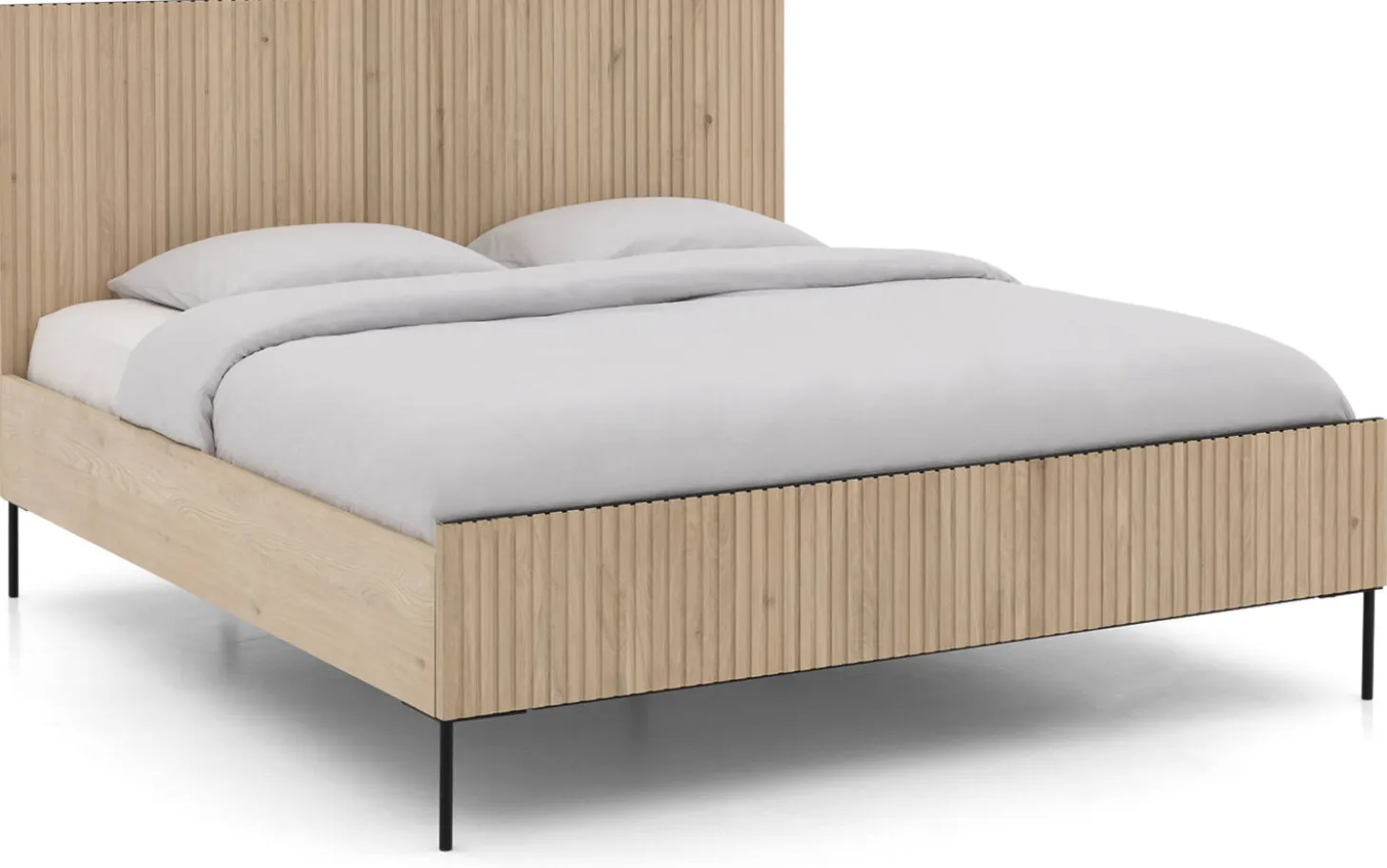 Das Bettgestell Capelli ist durch die außergewöhnlichen vertikalen Linien im Eichenholz ein stilvoller Blickfang für Ihr Schlafzimmer. Die runden schwarzen Füße unterstreichen die stilvolle Optik des Bettgestells. Mit seinem modernen Design ist das Bett Capelli die perfekte Wahl für ein modernes, zeitgemäßes Schlafzimmer.