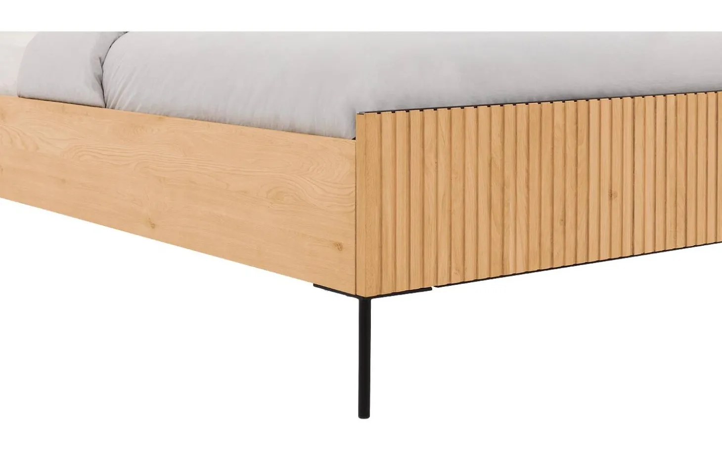 Das Bettgestell Capelli ist durch die außergewöhnlichen vertikalen Linien im Eichenholz ein stilvoller Blickfang für Ihr Schlafzimmer. Die runden schwarzen Füße unterstreichen die stilvolle Optik des Bettgestells. Mit seinem modernen Design ist das Bett Capelli die perfekte Wahl für ein modernes, zeitgemäßes Schlafzimmer.