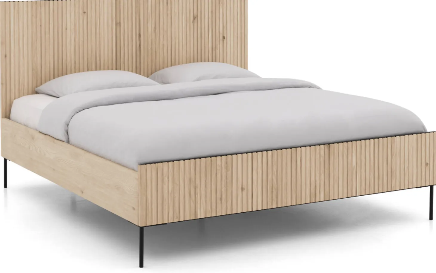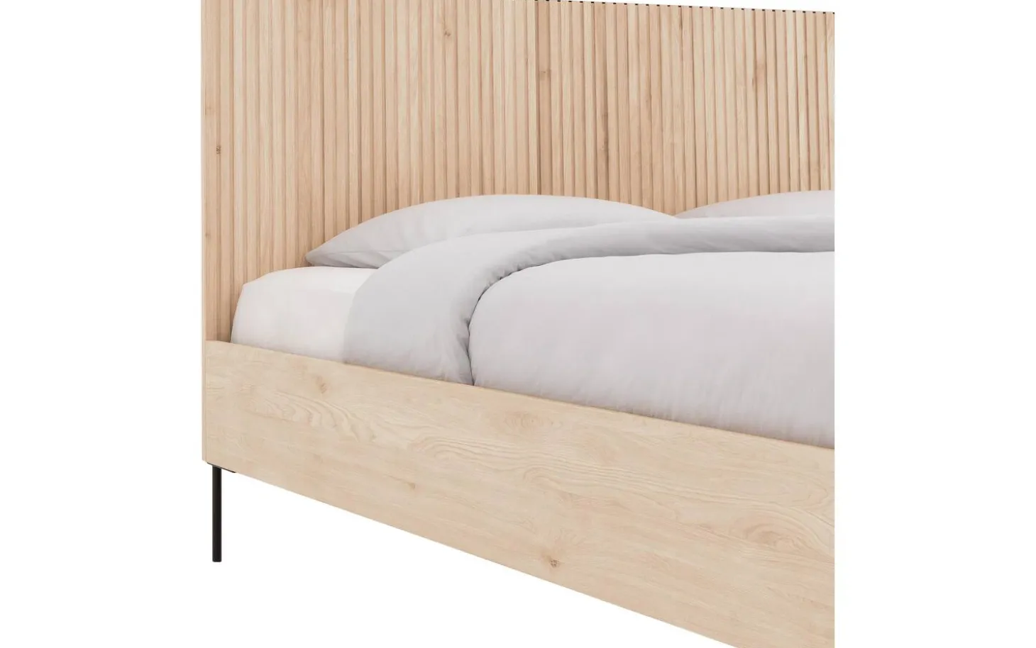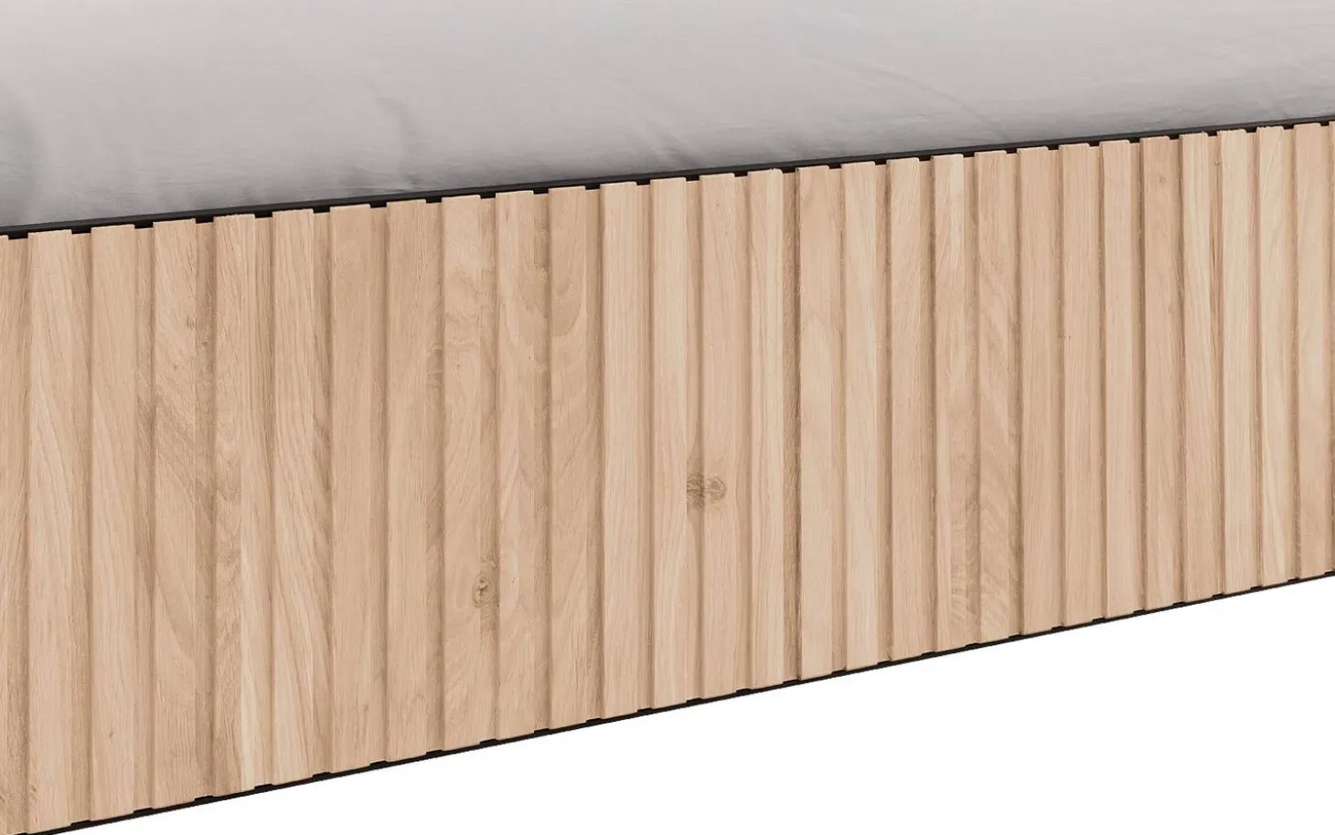 Das Bettgestell Capelli ist durch die außergewöhnlichen vertikalen Linien im Eichenholz ein stilvoller Blickfang für Ihr Schlafzimmer. Die runden schwarzen Füße unterstreichen die stilvolle Optik des Bettgestells. Mit seinem modernen Design ist das Bett Capelli die perfekte Wahl für ein modernes, zeitgemäßes Schlafzimmer.