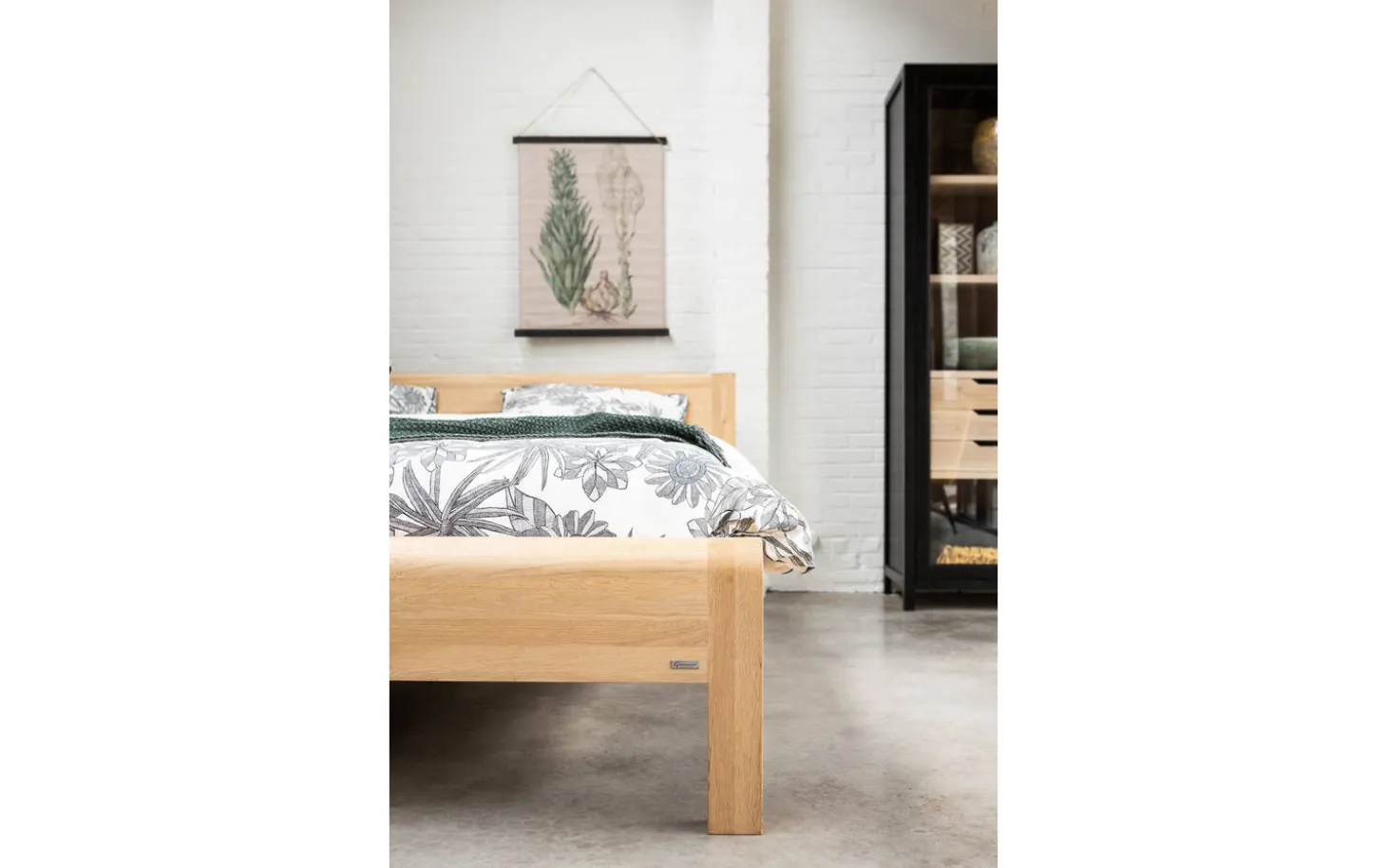 Das Bett Donna kennzeichnet sich durch seine ansprechenden runden Formen an Kopfteil und Seiten. Das verspielte und markante Design wird Sie noch lange erfreuen. Das robuste, massive Eichenholz bringt zudem eine frische, natürliche Note in Ihr Schlafzimmer. Das langlebige Eichenholz garantiert jahrelangen Schlafgenuss. Für ein geschmackvolles Gesamtbild kombinieren Sie das Bett Donna mit anderen Möbeln aus der gleichen Kollektion.
