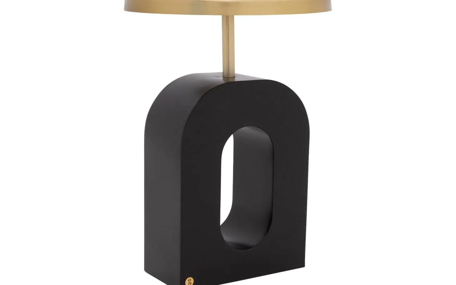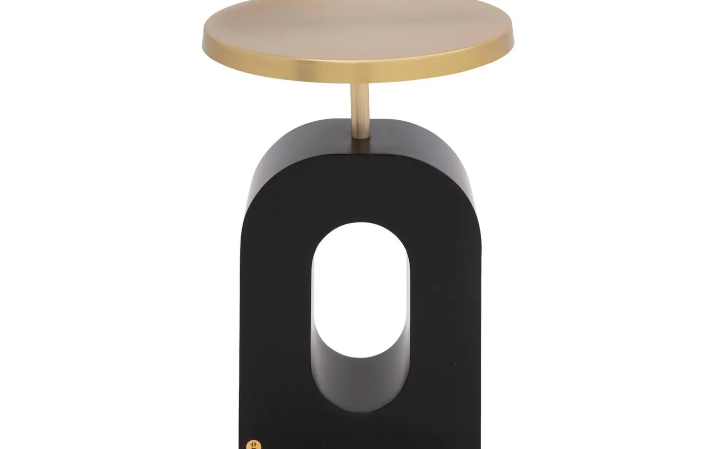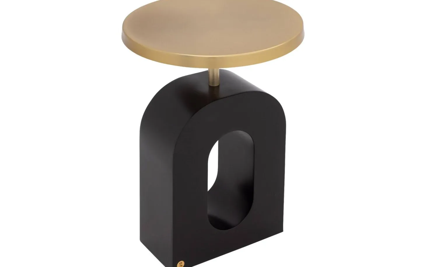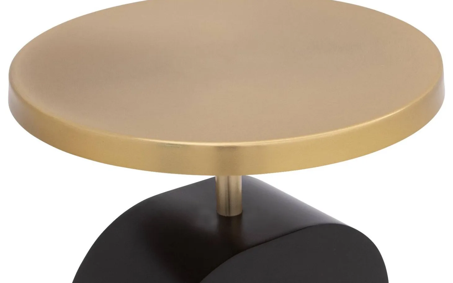 Beistelltisch Albin hat eine runde Form mit raffinierten Kurven im Fuß, die für einen trendigen, modernen Look sorgen. Der Kontrast zwischen der goldfarbenen Platte und dem schwarzen Untergestell verleiht Charakter und passt sowohl in moderne als auch in organische Einrichtungen.