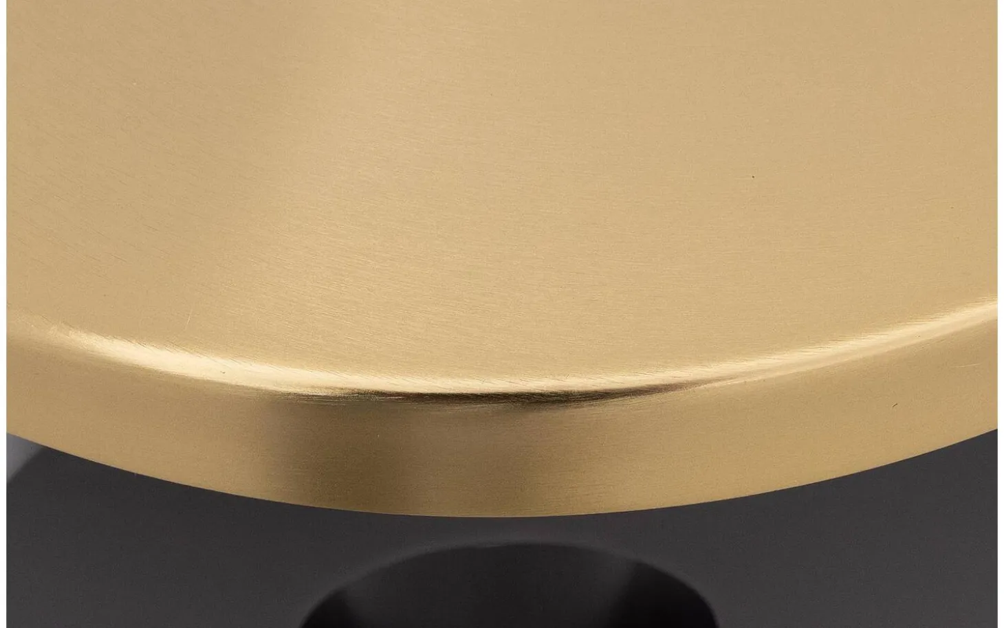 Die runde Tischplatte ist vollständig aus Metall mit einer hochwertigen pulverbeschichteten Oberfläche in Goldfarbe. Durch die glatte Oberfläche ist der Tisch leicht sauber zu halten und behält seinen Glanz.