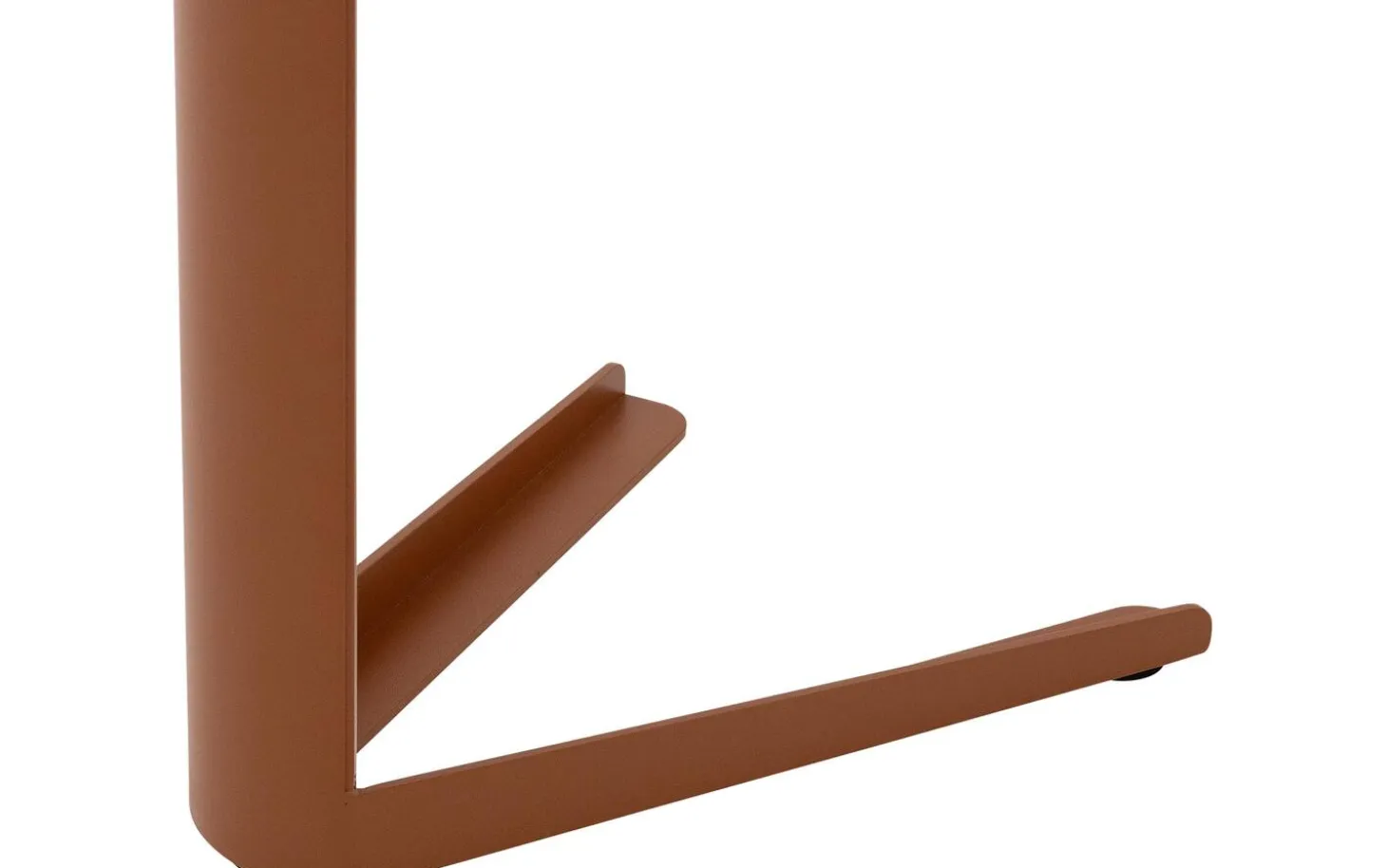 Buiten bijzettafel Positano heeft een strakke, slanke vorm en een warme oranje brique kleur. De poedercoating op het aluminium geeft de tafel een matte, duurzame kleurafwerking die bestand is tegen buiten. Een vrolijk en stijlvol accent op het terras.
