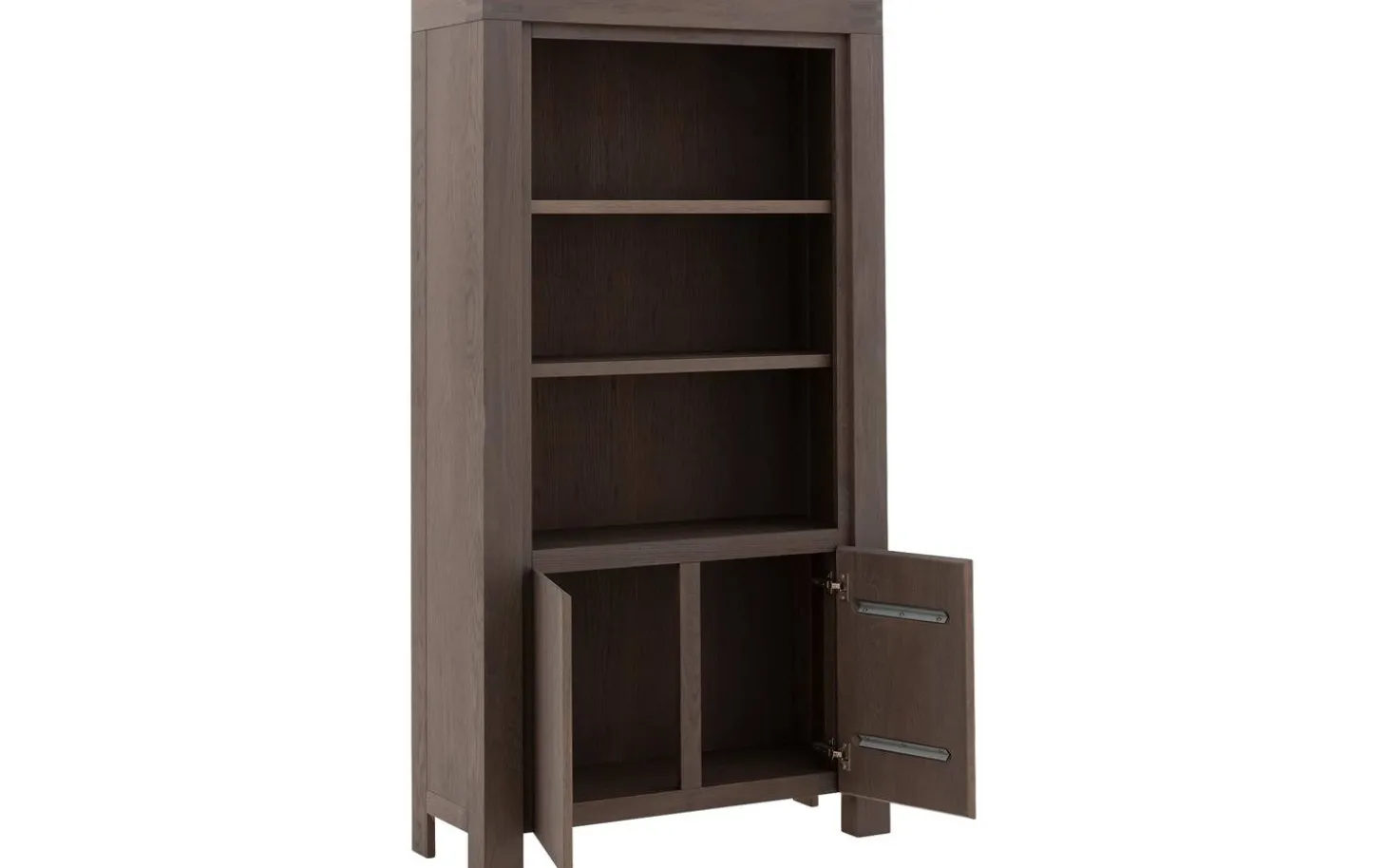 Stijlvolle details van deze donkerbruine eiken boekenkast