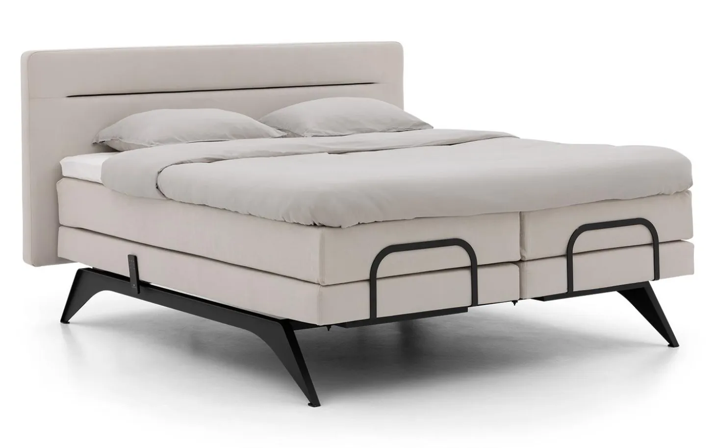 – 2 Taschenfederkernmatratzen im gleichen Stoffbezug wie das Boxspringbett, wobei jede Matratze den für Ihren Körper passenden Härtegrad bietet