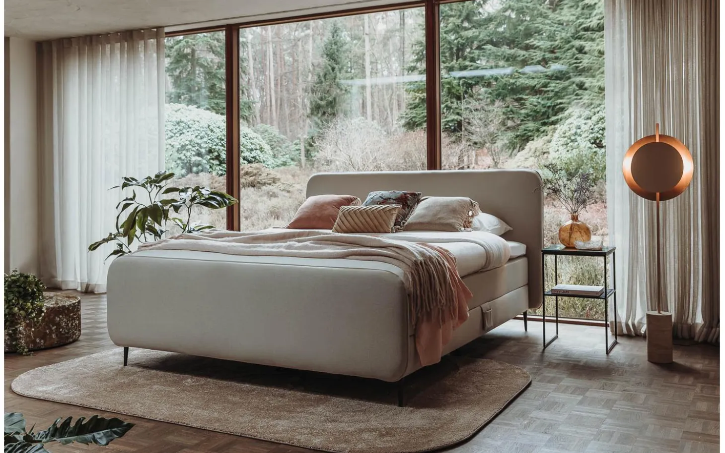 Wählen Sie einen flachen Lattenrost oder verleihen Sie Ihrem Boxspringbett mit der elektrisch verstellbaren Option zusätzlichen Luxus. Die 20 cm dicke Taschenfederkernmatratze mit 5 Komfortzonen hat ca. 380 Taschenfedern pro m2, was himmlischen Liegekomfort garantiert. Darüber hinaus ist die Matratze mit einer Deckschicht aus atmungsaktivem Kaltschaum versehen. Matratze und Boxspringbett sind in derselben Farbe gehalten, wodurch ein besonders harmonisches Gesamtbild entsteht. Sie können aber auch zusätzlich festen Gegendruck hinzufügen. Mit einer Matratzenauflage können Sie Ihren Schlafkomfort an Ihre Bedürfnisse anpassen. Die Matratzenauflage ist zwischen 7 und 12 cm dick und bestimmt letztendlich die Einstiegshöhe und den Liegekomfort.