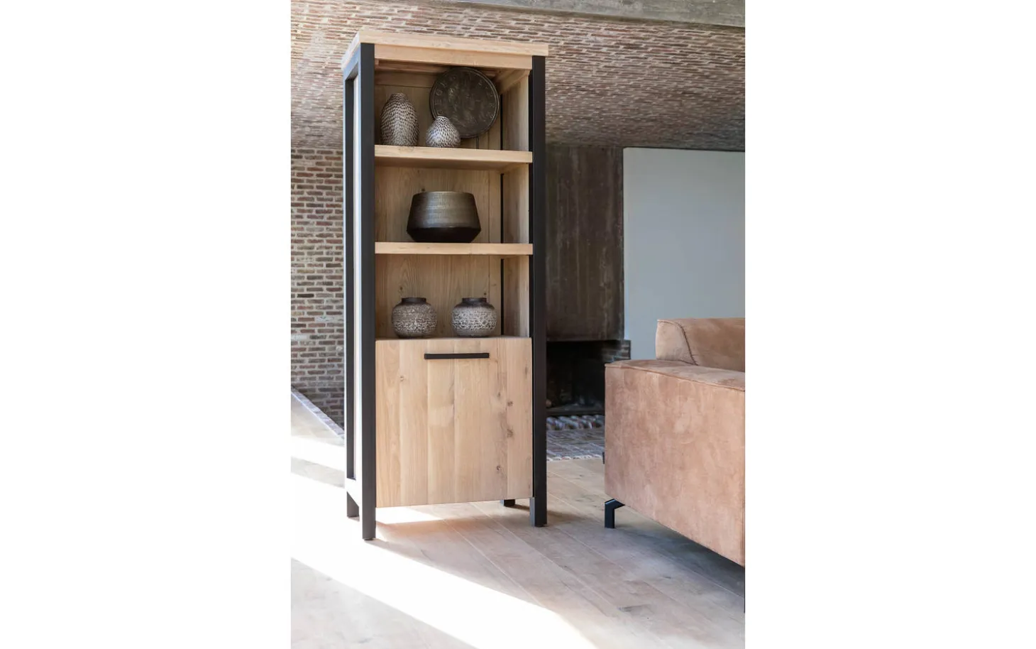 - Industrieller Charakter durch Kombination von Eiche und schwarzen Metallfüßen