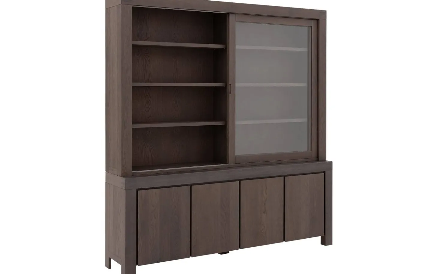De combinatie van draaideuren en schuifdeuren maakt Clear extra praktisch. Je hebt gemakkelijk toegang tot al je spullen, van serviesgoed tot mooie woonaccessoires. Het soft closing systeem zorgt ervoor dat de deuren altijd zacht en geruisloos sluiten.