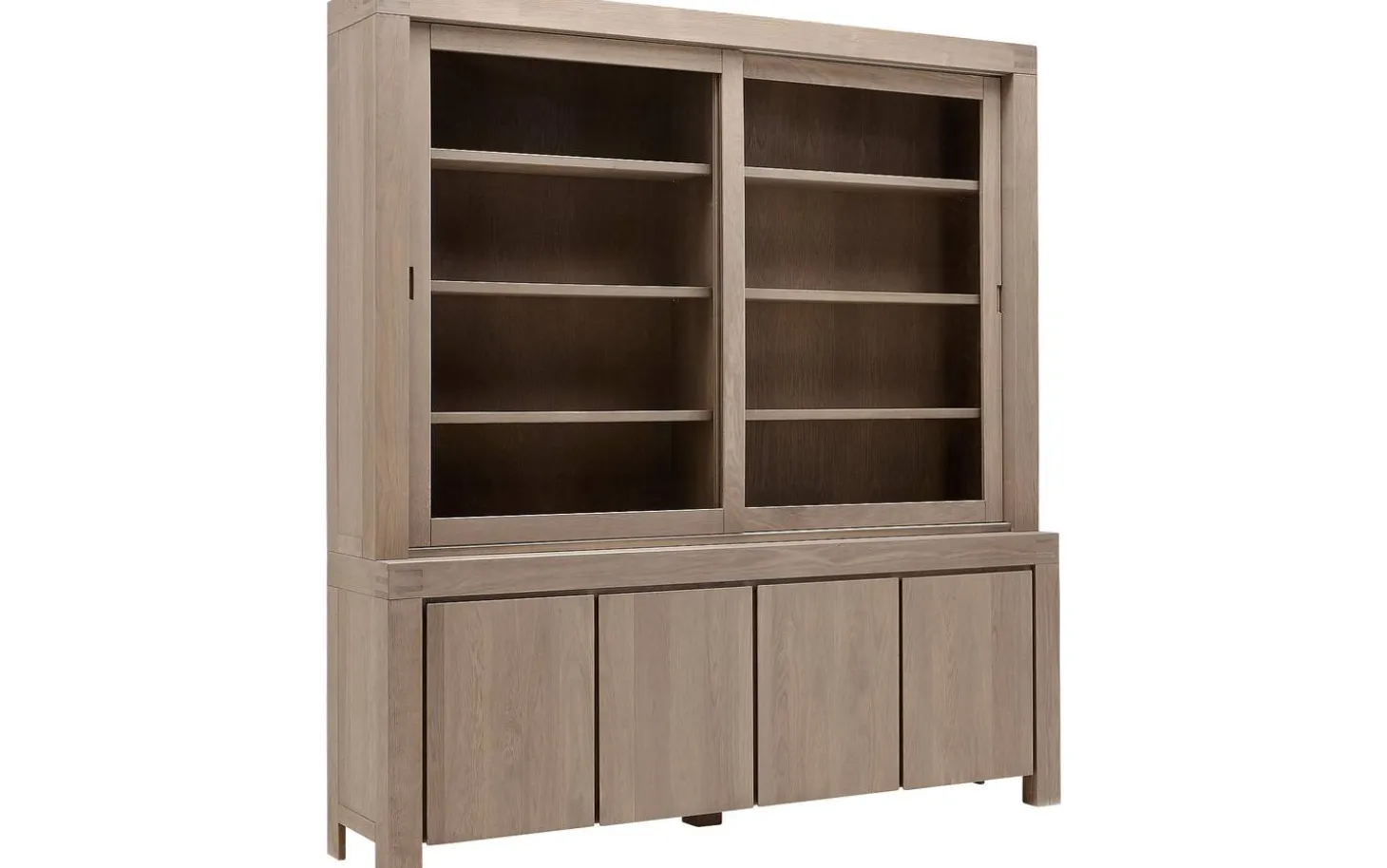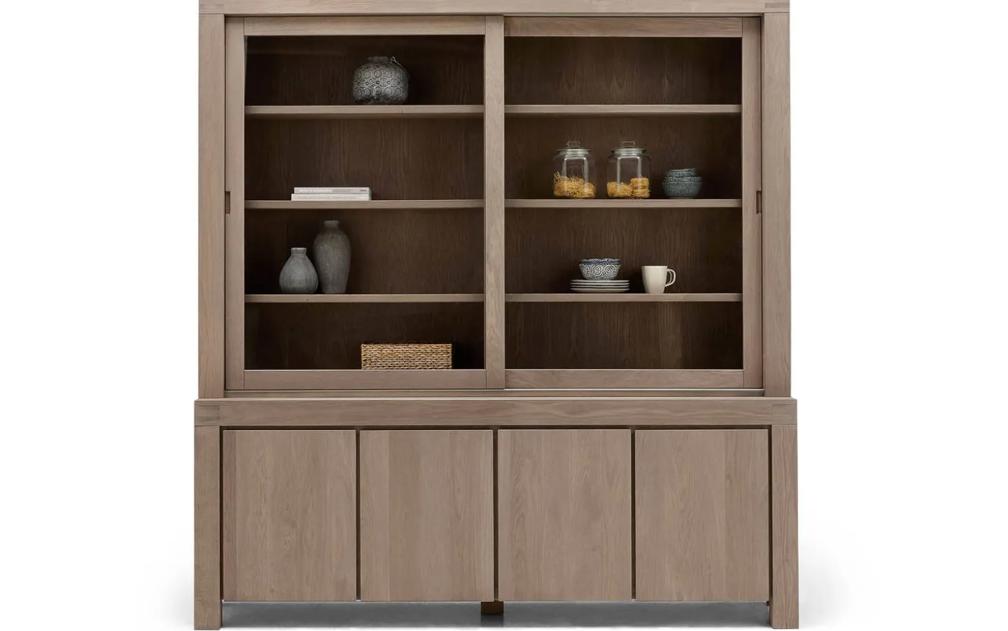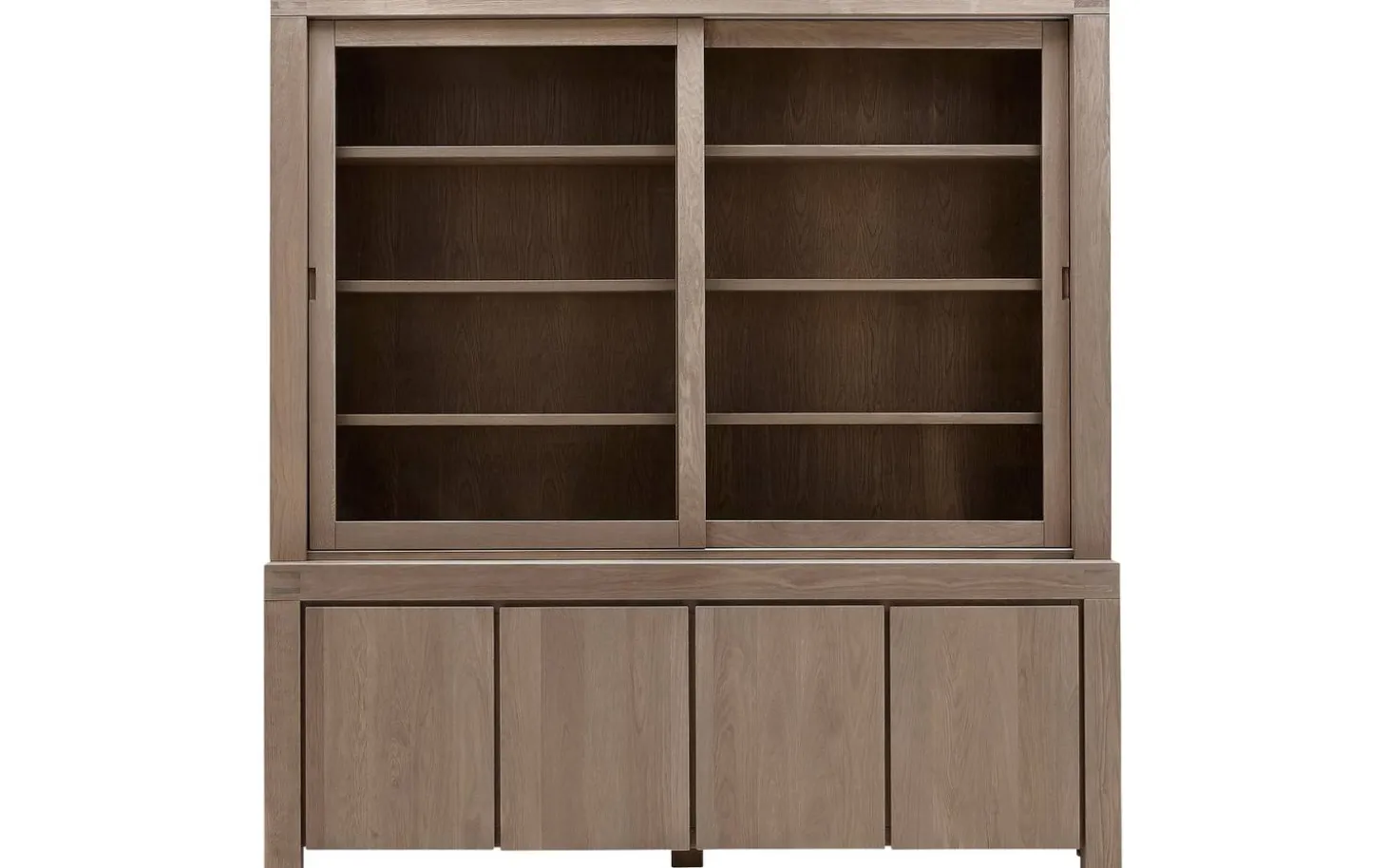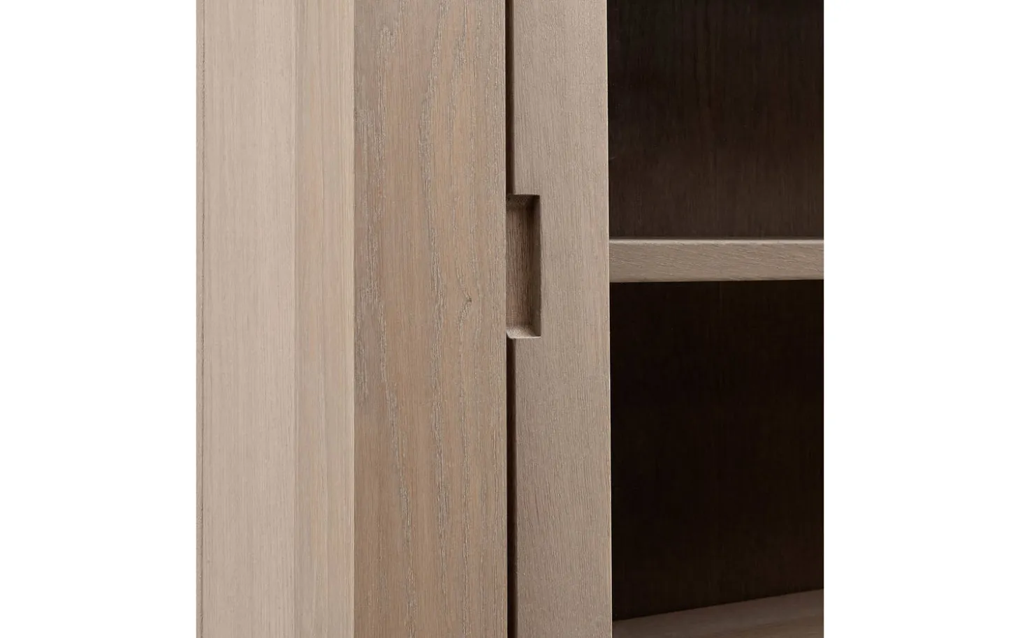 Deze eiken buffetkast straalt pure warmte uit dankzij de verweerde afwerking. De natuurlijke nerftekening en kleurschakeringen geven Clear een authentiek karakter. De combinatie van open en gesloten vakken zorgt voor een speelse uitstraling en biedt alle ruimte om jouw mooiste spullen te presenteren én praktisch op te bergen.