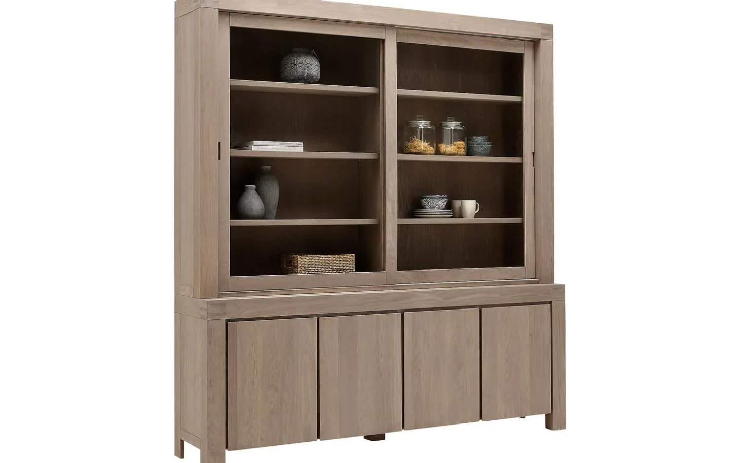 Buffetkast Clear combineert een warme houtlook met slim ontworpen opbergruimte. De landelijke uitstraling en de praktische combinatie van draaideuren en schuifdeuren maken deze eiken buffetkast tot een echte blikvanger in je woonkamer of eetkamer. Perfect voor wie houdt van natuurlijk wonen met karakter.