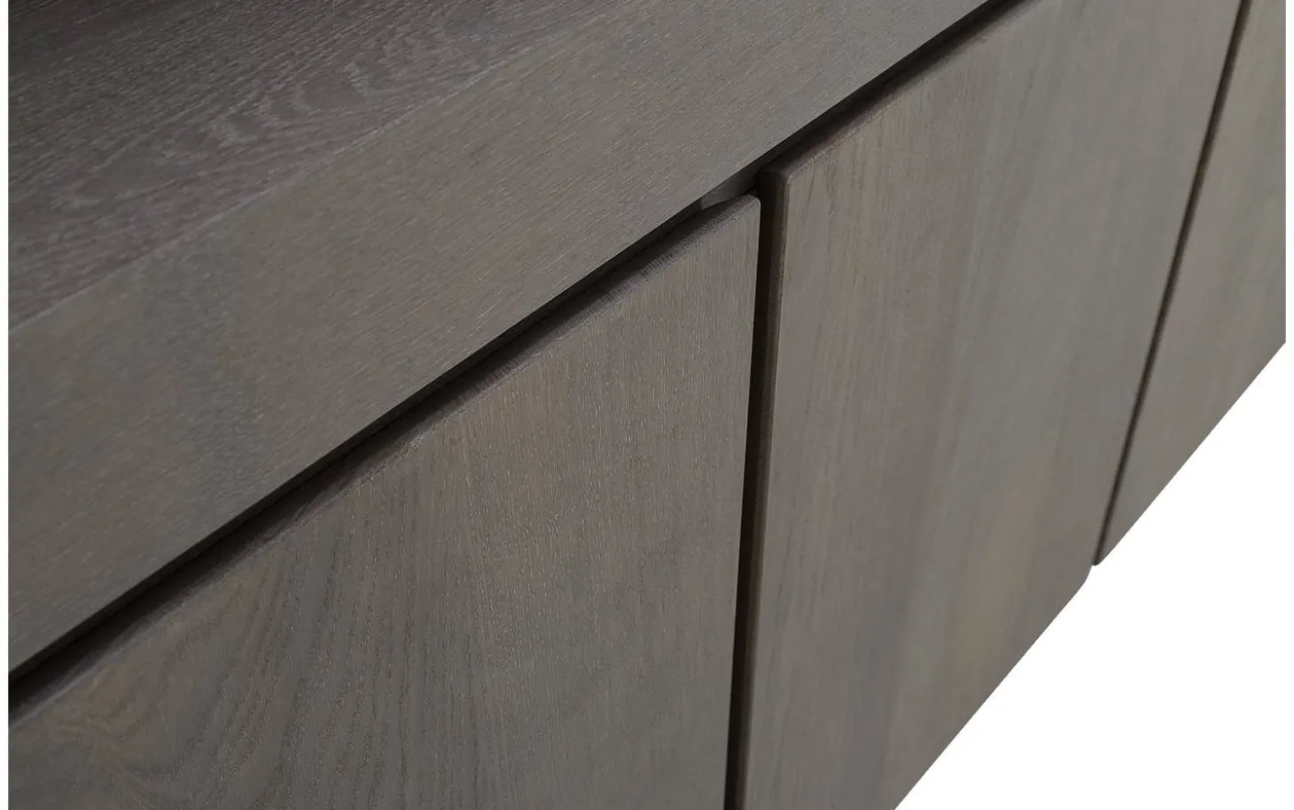 Deze eiken buffetkast met leemkleurige laklaag brengt warmte en rust in je interieur. Het strakke design zonder handgrepen geeft een moderne uitstraling, terwijl het eikenhout zorgt voor een landelijk karakter. Perfect voor wie houdt van tijdloze stijl met een warme, natuurlijke uitstraling.