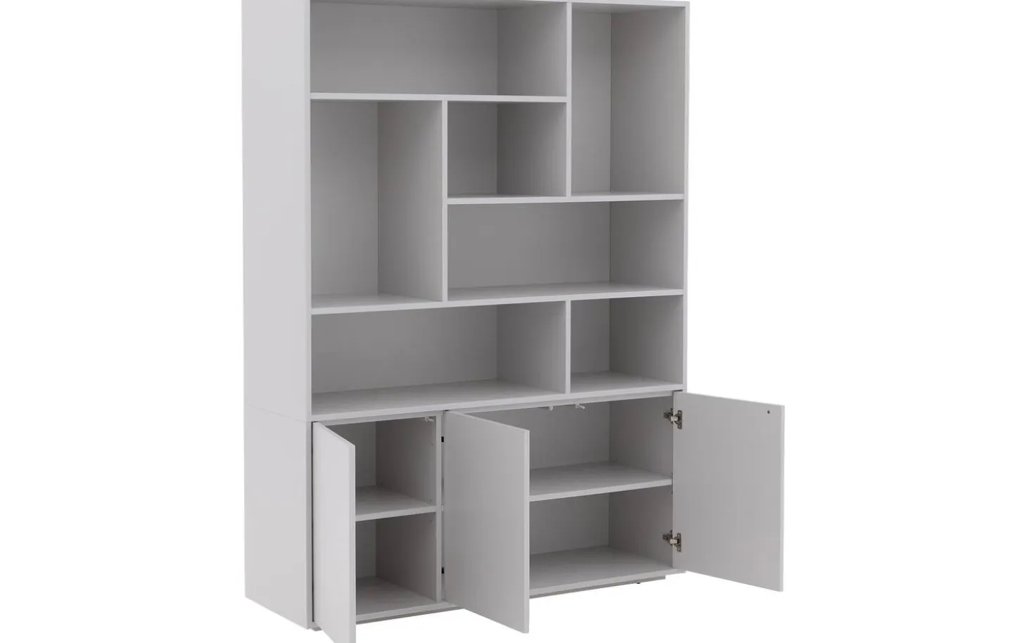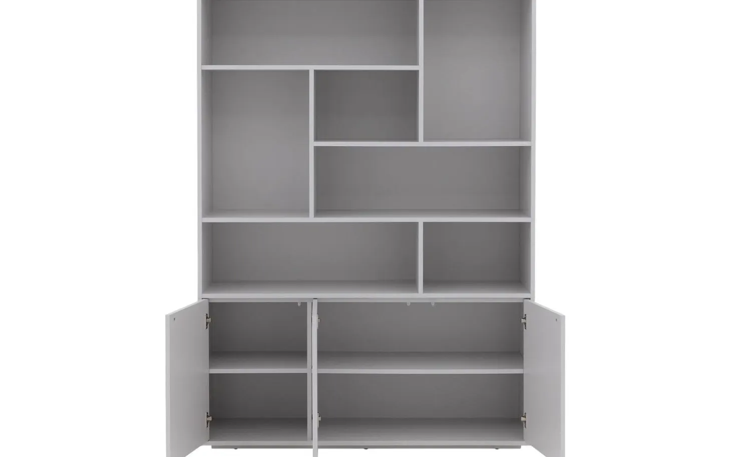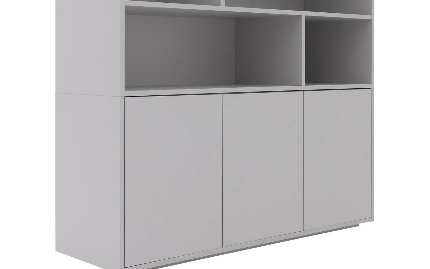 Buffetschrank Madrid kombiniert moderne Geradlinigkeit mit praktischem Stauraum für jeden Raum. Mit seiner grauen Kunststoffoberfläche und dem praktischen Push-to-Open-System erhalten Sie einen pflegeleichten Blickfang, der perfekt zu einer zeitgemäßen Einrichtung passt. Die spielerische Facheinteilung bietet Ihnen allen Raum für Dekoration und Aufbewahrung.