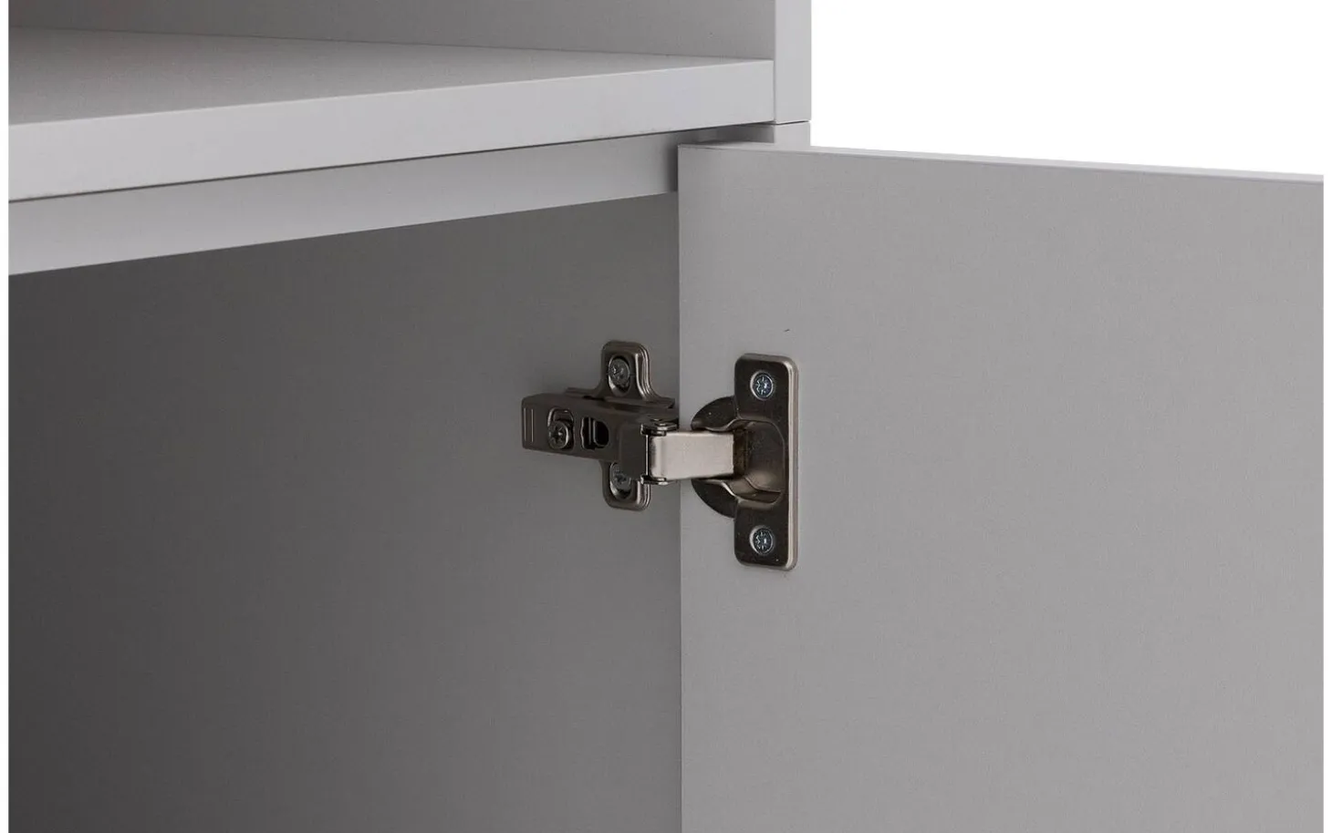 Die neutrale graue Farbe des Buffetschranks Madrid verleiht eine ruhige, moderne Ausstrahlung, die mühelos zu verschiedenen Einrichtungsstilen passt. Die klaren Linien ohne Griffe sorgen für einen cleanen Look, während die verschiedenen Fächer ein spielerisches Element hinzufügen. Perfekt für alle, die aufgeräumtes und stilvolles Wohnen lieben.