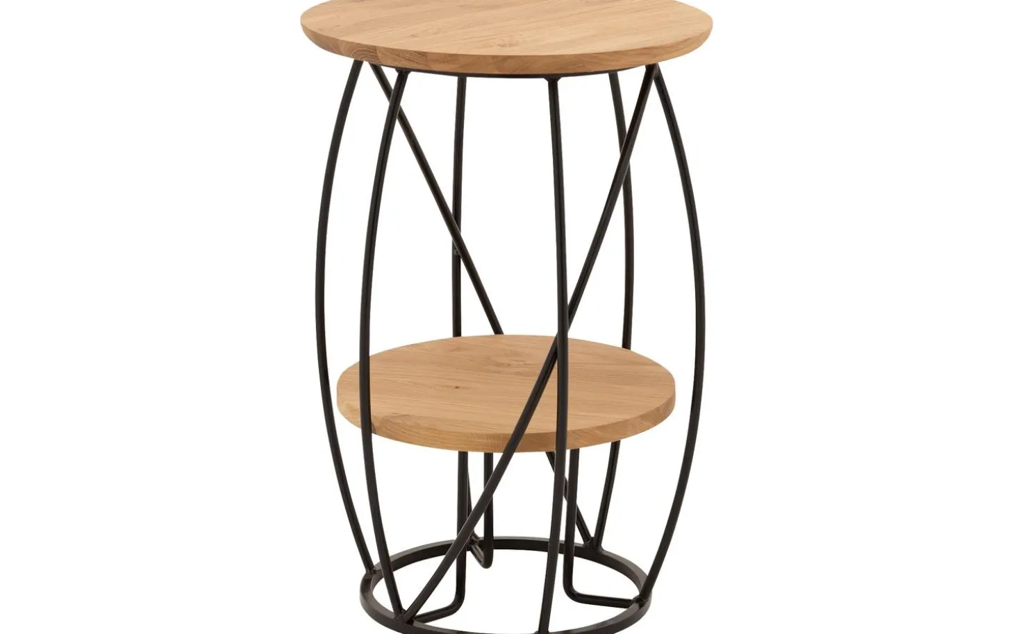 Der Couchtisch Bellis zeichnet sich durch seine runden, organischen Formen aus, die sowohl in der Platte als auch im Gestell wiederkehren. Die Kombination aus naturbelassener Eiche und dem schwarzen Metallrahmen schafft eine stilvolle ländliche Ausstrahlung. Mit seinen kompakten Abmessungen passt dieser Tisch perfekt in kleinere Räume.
