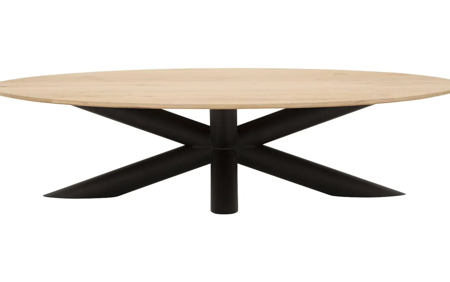 Entdecken Sie den ovalen Couchtisch Gs-1302 aus massivem Eichenholz. Dieser Couchtisch aus Eiche im Naturton mit schwarzem Kreuzfuß bringt Wärme und Charakter in Ihr Wohnzimmer. Die verjüngte Platte und die robusten Metallfüße sorgen für eine perfekte Balance zwischen natürlich und industriell. Dank des Soft-Touch-Lacks bleibt die Holzmaserung schön sichtbar und fühlbar.