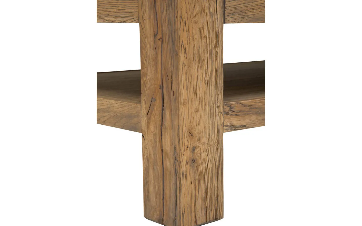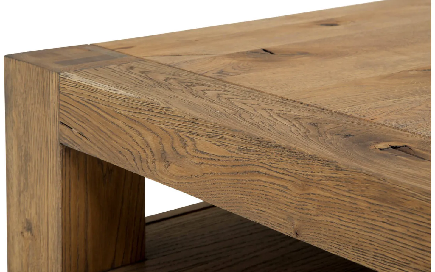 - Massives Eichenholz mit natürlicher Maserung und grober Struktur