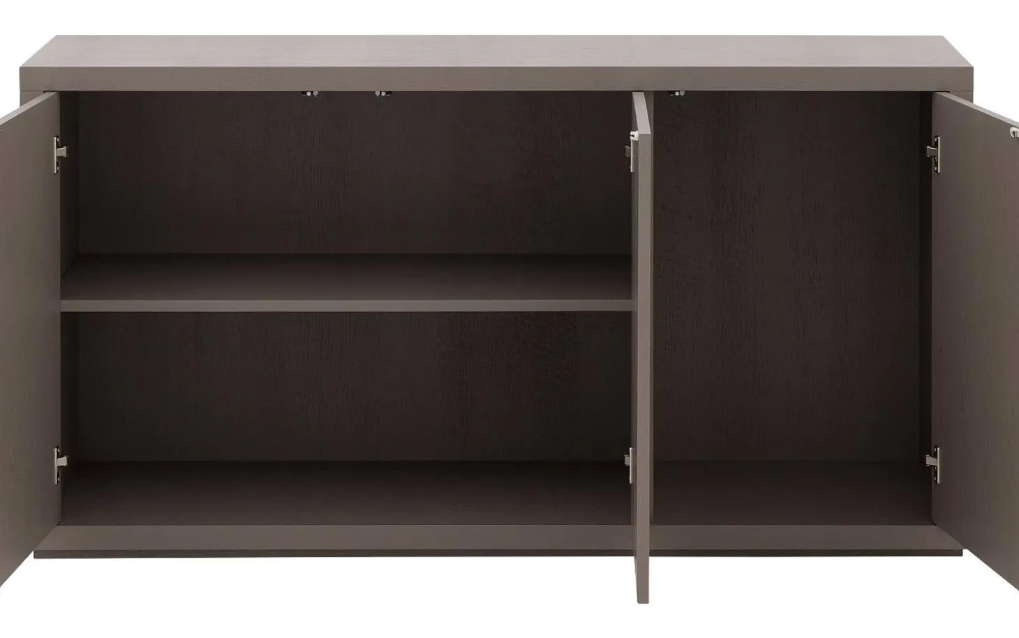 Sideboard Barcelona beeindruckt mit seinem großzügigen Format und der warmen Eichen-Ausführung in Taupe lackiert. Die natürliche Holzmaserungsstruktur verleiht diesem Sideboard eine robuste aber raffinierte Ausstrahlung, die perfekt zu sowohl modernen als auch ländlichen Einrichtungen passt. Aufgeräumt und stilvoll zugleich.