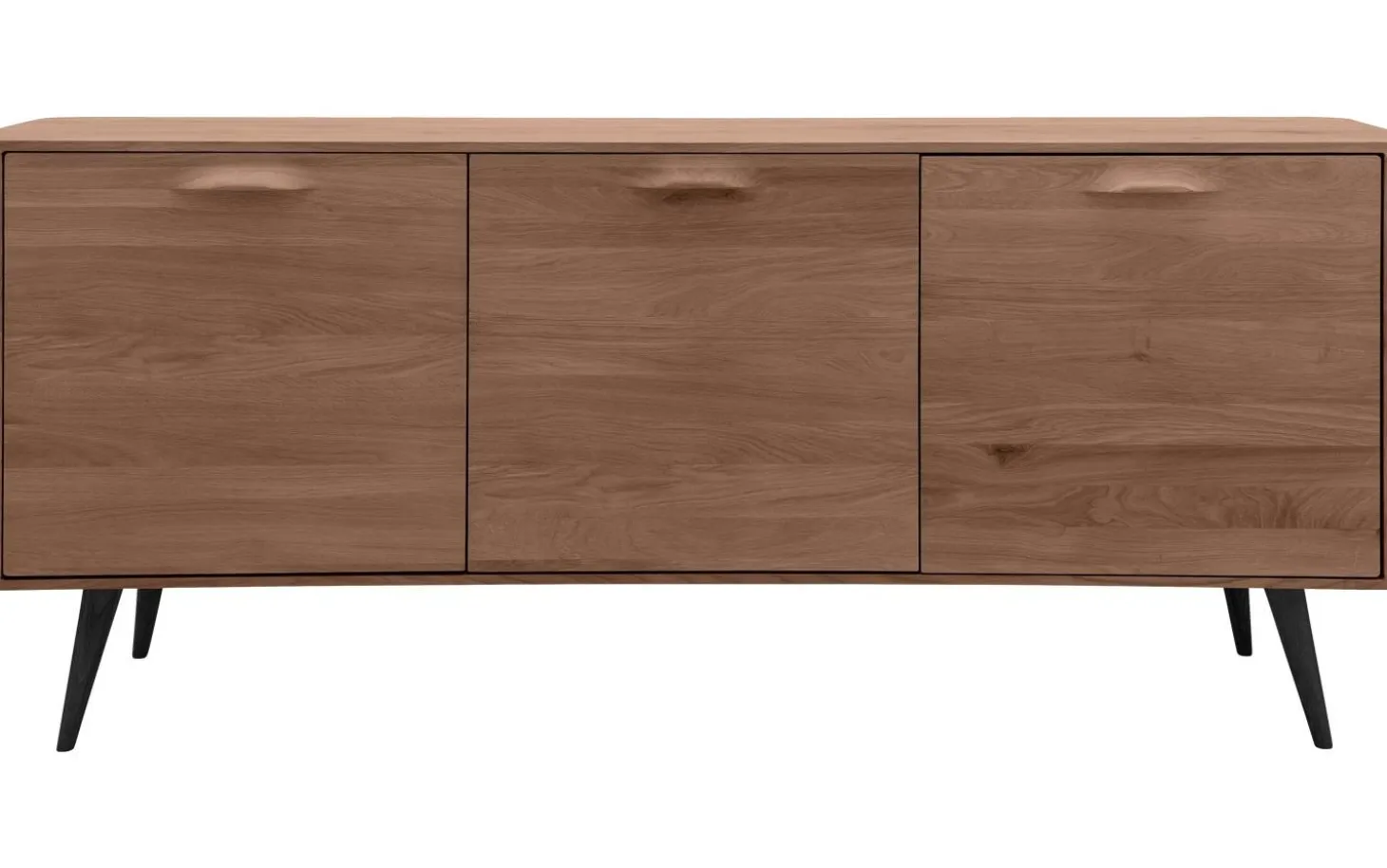 Der hochwertige Soft-Touch-Lack in Nussfarbe schützt das Eichenholz optimal und verleiht eine samtweiche Ausführung. Das langlebige Material hält jahrelang, während die natürlichen Maserzeichnungen jedes Sideboard einzigartig machen. Die drei Türen bieten praktischen Stauraum für all Ihre Sachen.