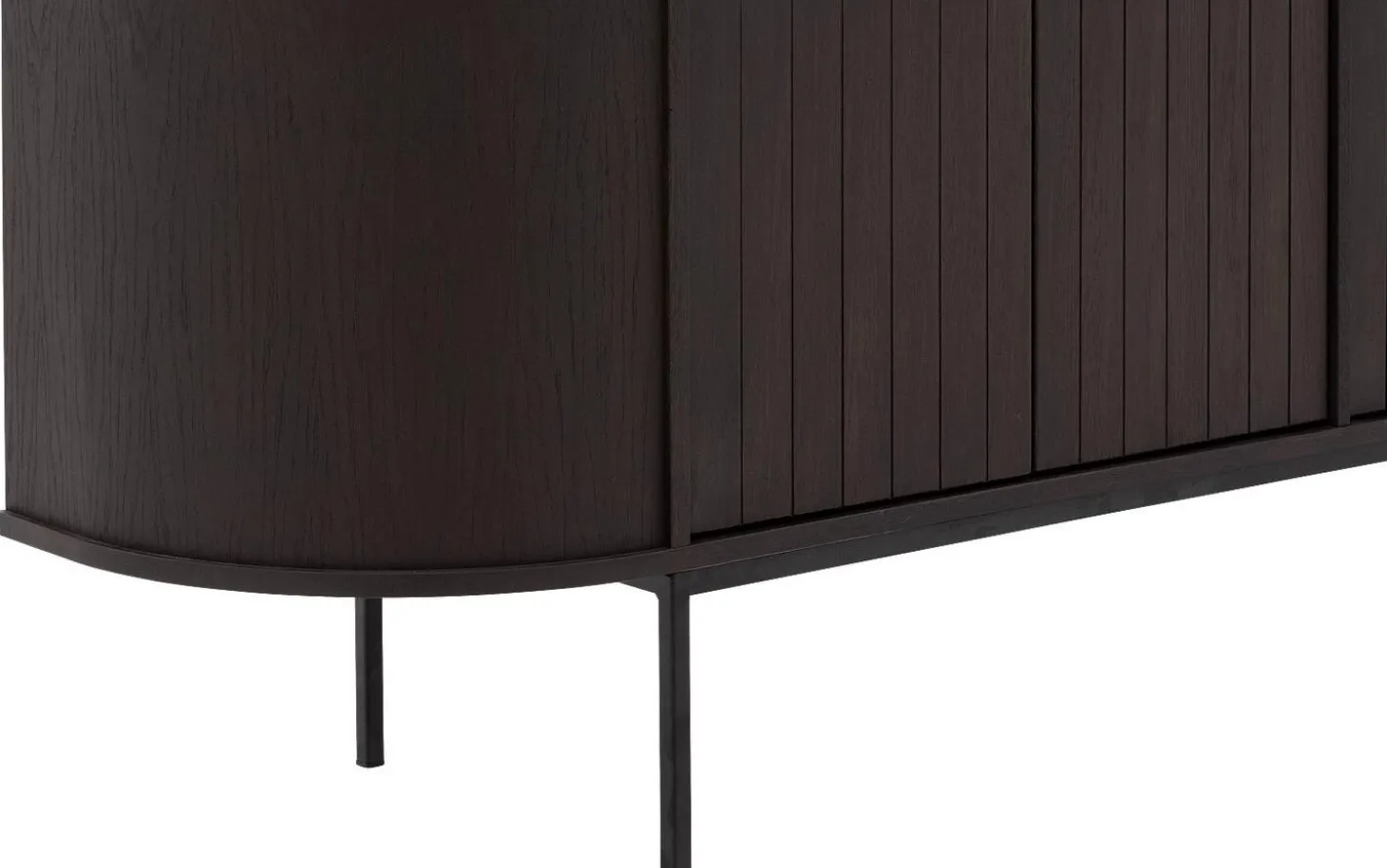 Dieses braune Eichen-Sideboard Delfina verleiht Ihrem Interieur sofort eine warme, moderne Ausstrahlung. Die vertikal gestreiften Türen und abgerundeten Ecken sorgen für einen einzigartigen Look, der auffällt, ohne aufdringlich zu sein. Ein zeitgemäßes Sideboard, das stilvolles Aufräumen zu einer Kunstform macht.