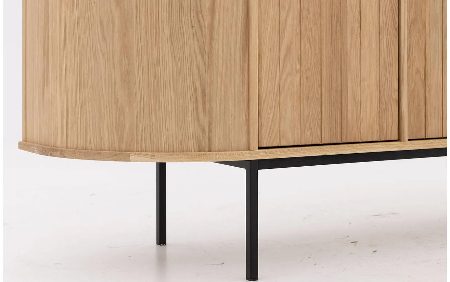 Sideboard Delfina kombiniert moderne Eleganz mit praktischem Stauraum in einem einzigartigen niederländischen Design. Die sanften Rundungen, vertikal gestreiften Türen und subtilen schwarzen Füße schaffen eine zeitlose Ausstrahlung, die Ihren Raum direkt aufwertet. Das praktische Push-to-Open-System sorgt für klare Linien ohne sichtbare Griffe.