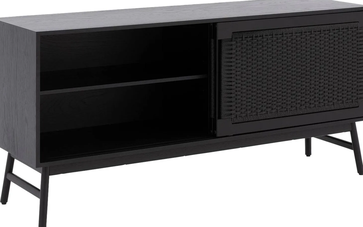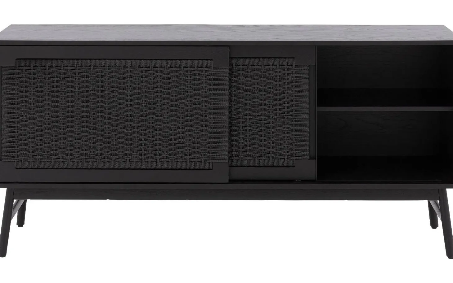 Sideboard Libretto kombiniert klare moderne Linien mit der warmen Ausstrahlung von Eiche. Die schwarze Lackierung und die geflochtene Holzstruktur sorgen für eine natürliche Eleganz, die sofort ins Auge fällt. Mit praktischen Schiebetüren verstaust du alles ordentlich, während dieses Sideboard gleichzeitig ein echtes Statement in deinem Interieur setzt.