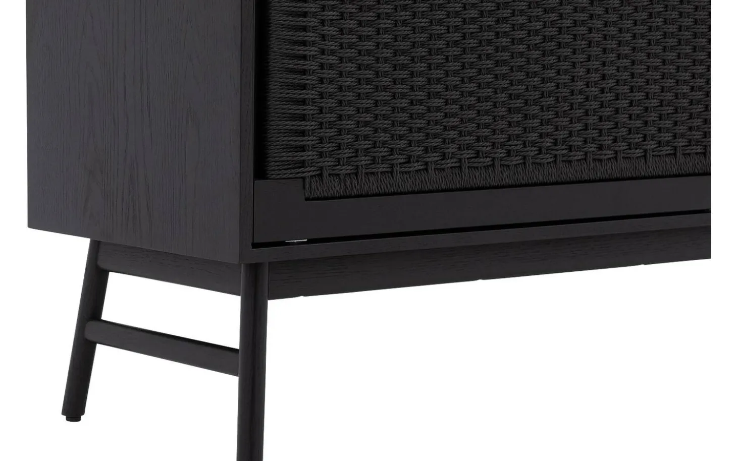 Dieses schwarze Eichen-Sideboard strahlt modernen Charme mit seiner klaren Formgebung aus. Die geflochtene Holzstruktur fügt eine wunderbare natürliche Note hinzu, während die schwarze Lackschicht für zeitlose Eleganz sorgt. Perfekt für alle, die die Kombination aus Natur und Design lieben.