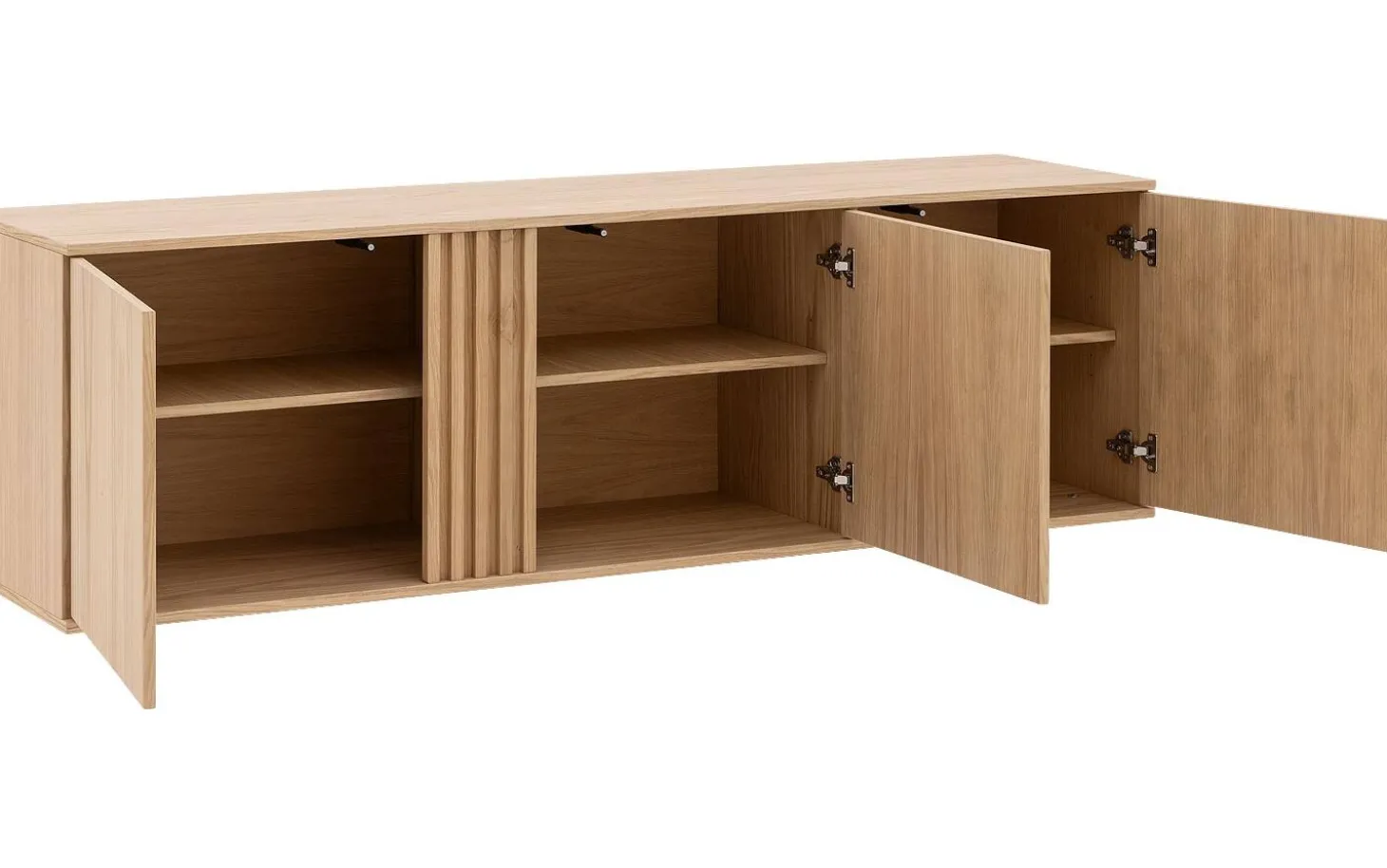 Mit seinen großzügigen Abmessungen von 187 x 55 x 46 cm bietet Viola reichlich Platz für Geschirr, Dokumente oder andere persönliche Gegenstände. Die drei Türen teilen den Stauraum praktisch auf, sodass Sie alles ordentlich organisiert halten.