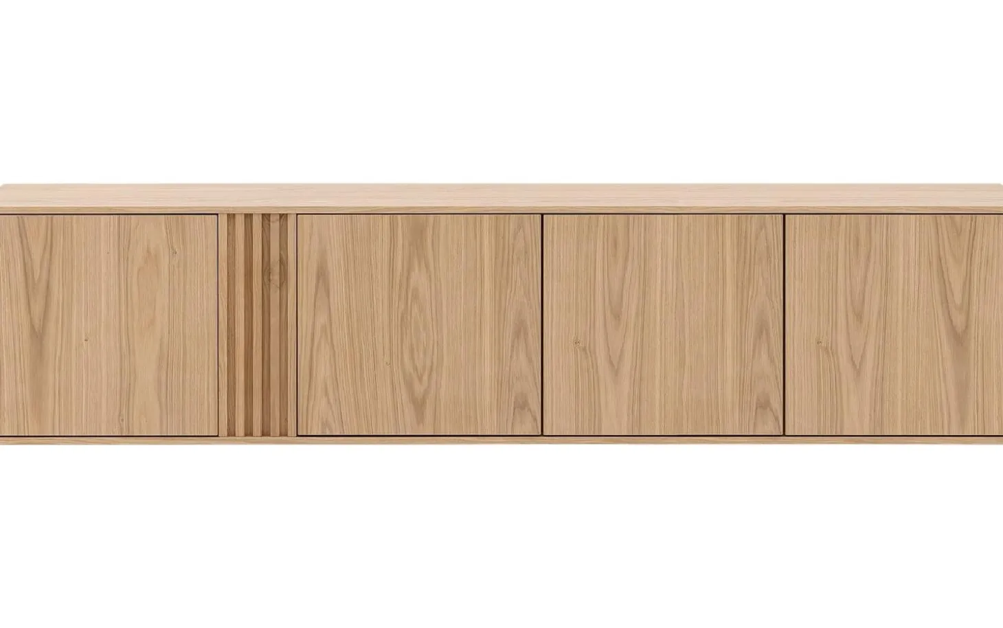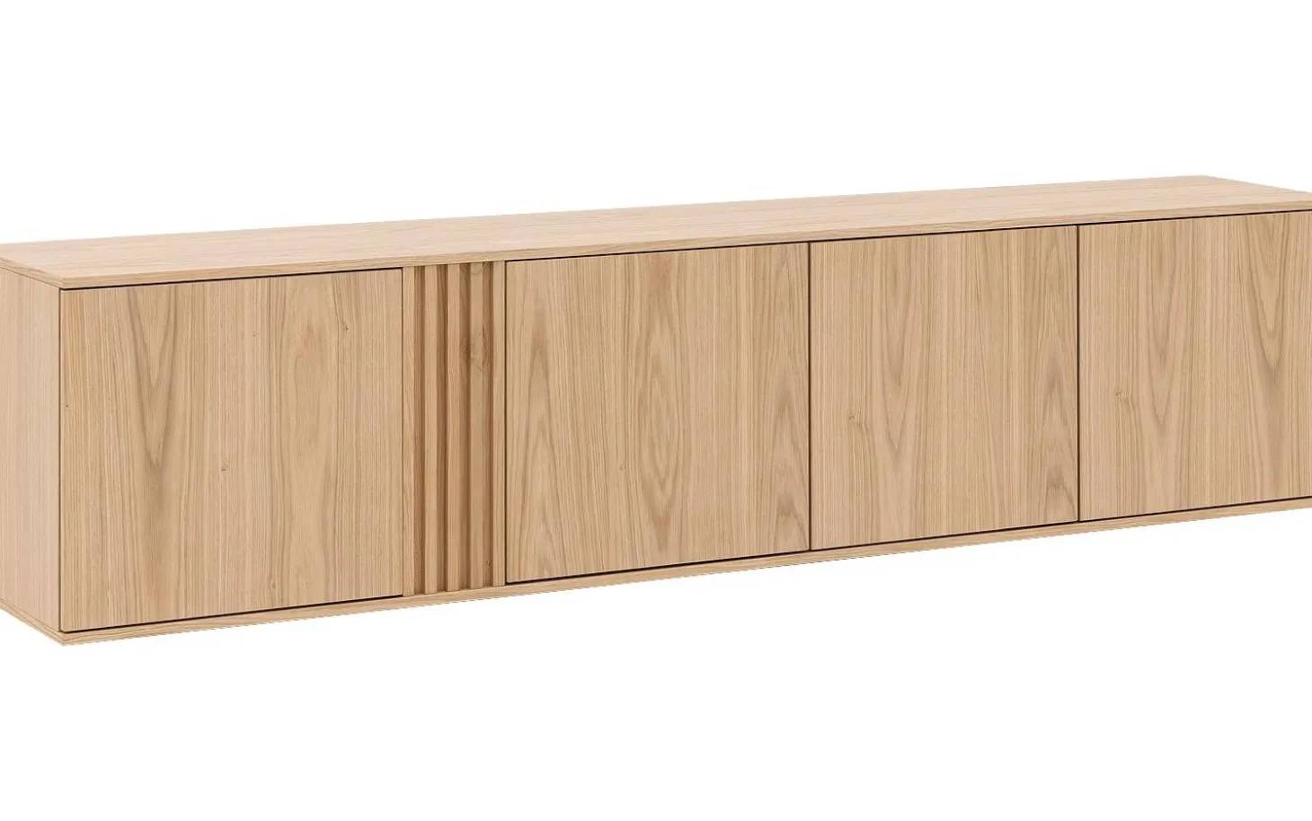 Durch die hängende Montage scheint das Sideboard zu schweben, was zusätzliches Raumgefühl kreiert. Die vier Türen bieten reichlich Stauraum für Geschirr, Dokumente oder andere Gegenstände, die Sie ordentlich außer Sichtweite halten möchten. Eine aufgeräumte Ausstrahlung garantiert.