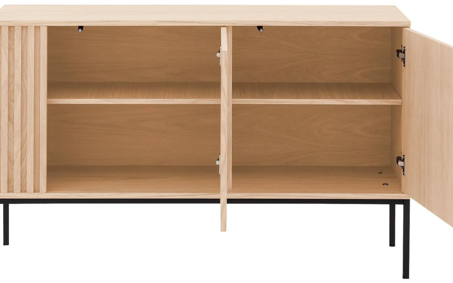 Sideboard Viola strahlt moderne Eleganz mit seinen klaren Linien und der raffinierten White Oak-Oberfläche aus. Die schwarzen Metallbeine sorgen für einen schönen Kontrast und verleihen dem Sideboard eine luftige Ausstrahlung. Perfekt kombinierbar mit verschiedenen Einrichtungsstilen, von skandinavisch bis industriell.