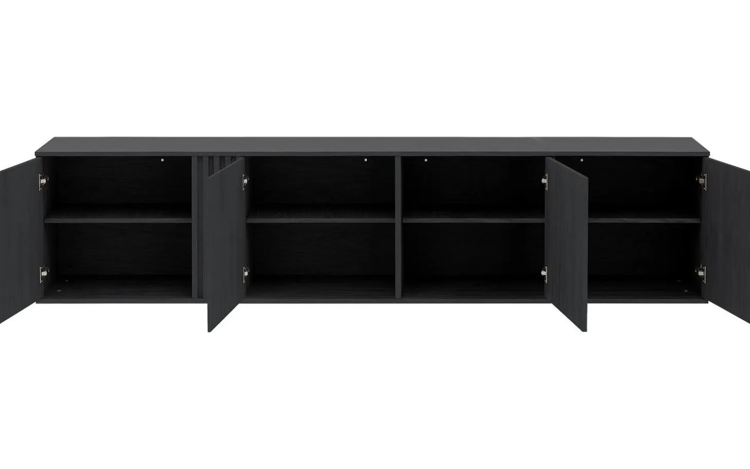- Vier großzügige Fächer hinter klaren Türen ohne Griffe