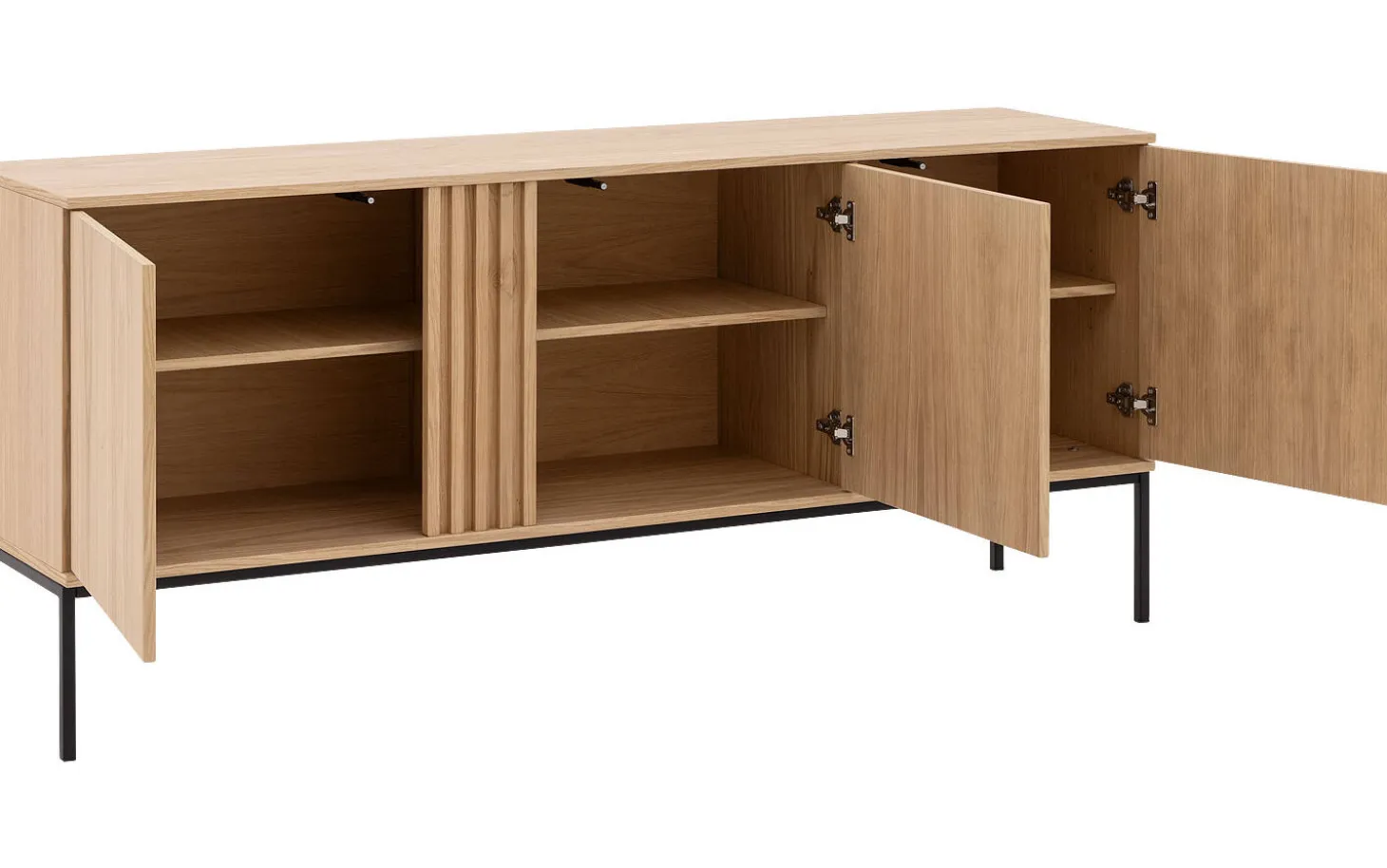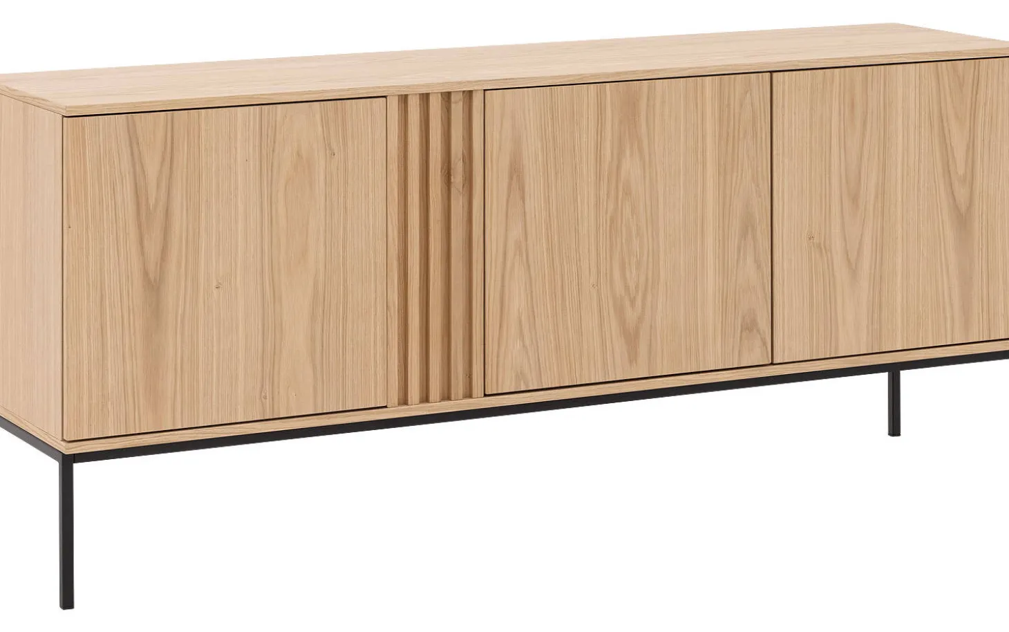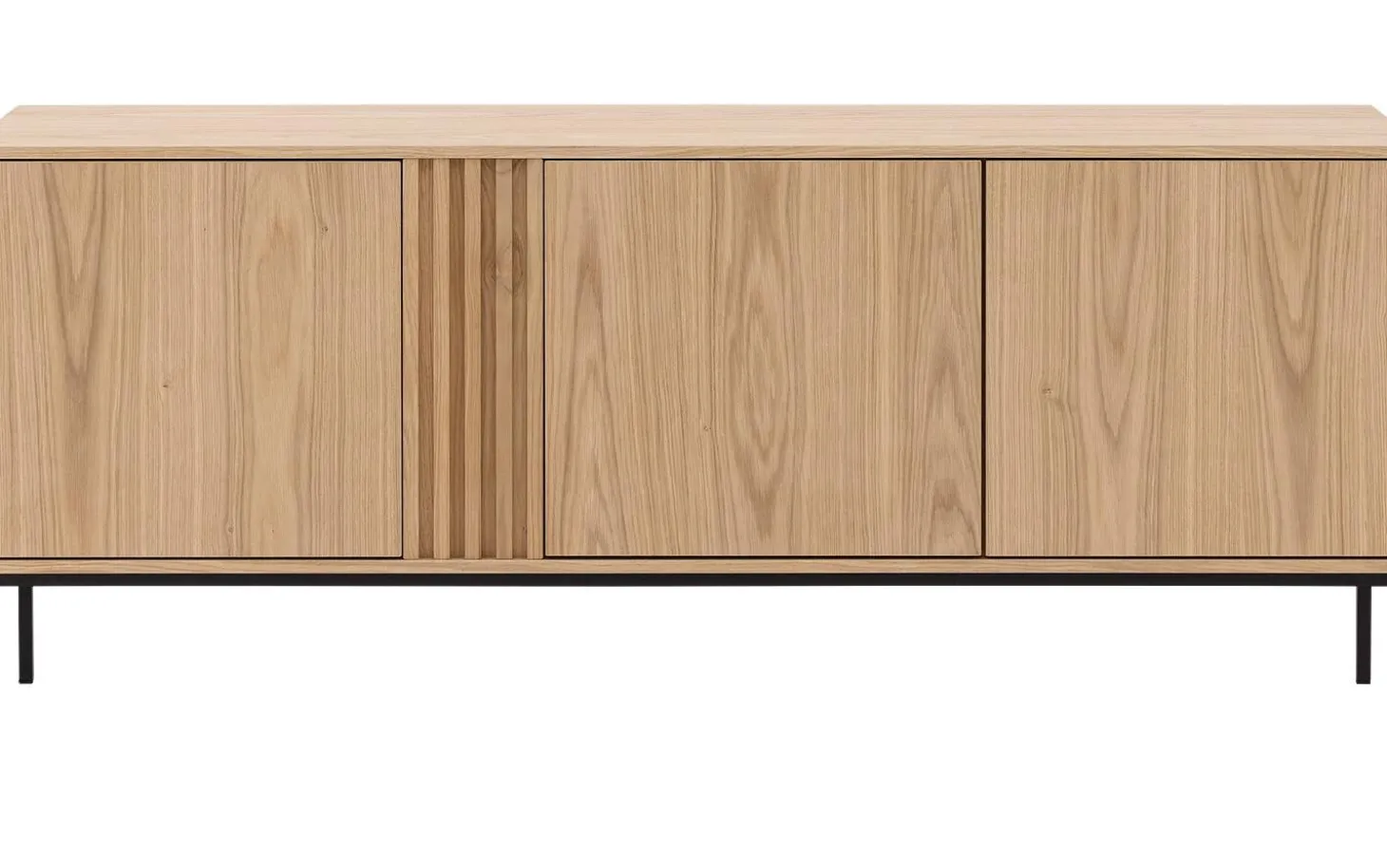 Sideboard Viola kombiniert moderne Eleganz mit praktischem Stauraum für Ihr Interieur. Die klaren Linien und dezenten schwarzen Metallfüße verleihen diesem Eichen-Sideboard eine zeitlose Ausstrahlung. Das praktische Push-to-Open-System sorgt für eine klare Verarbeitung ohne Griffe, während das langlebige Eichenfurnier jahrelang schön bleibt.