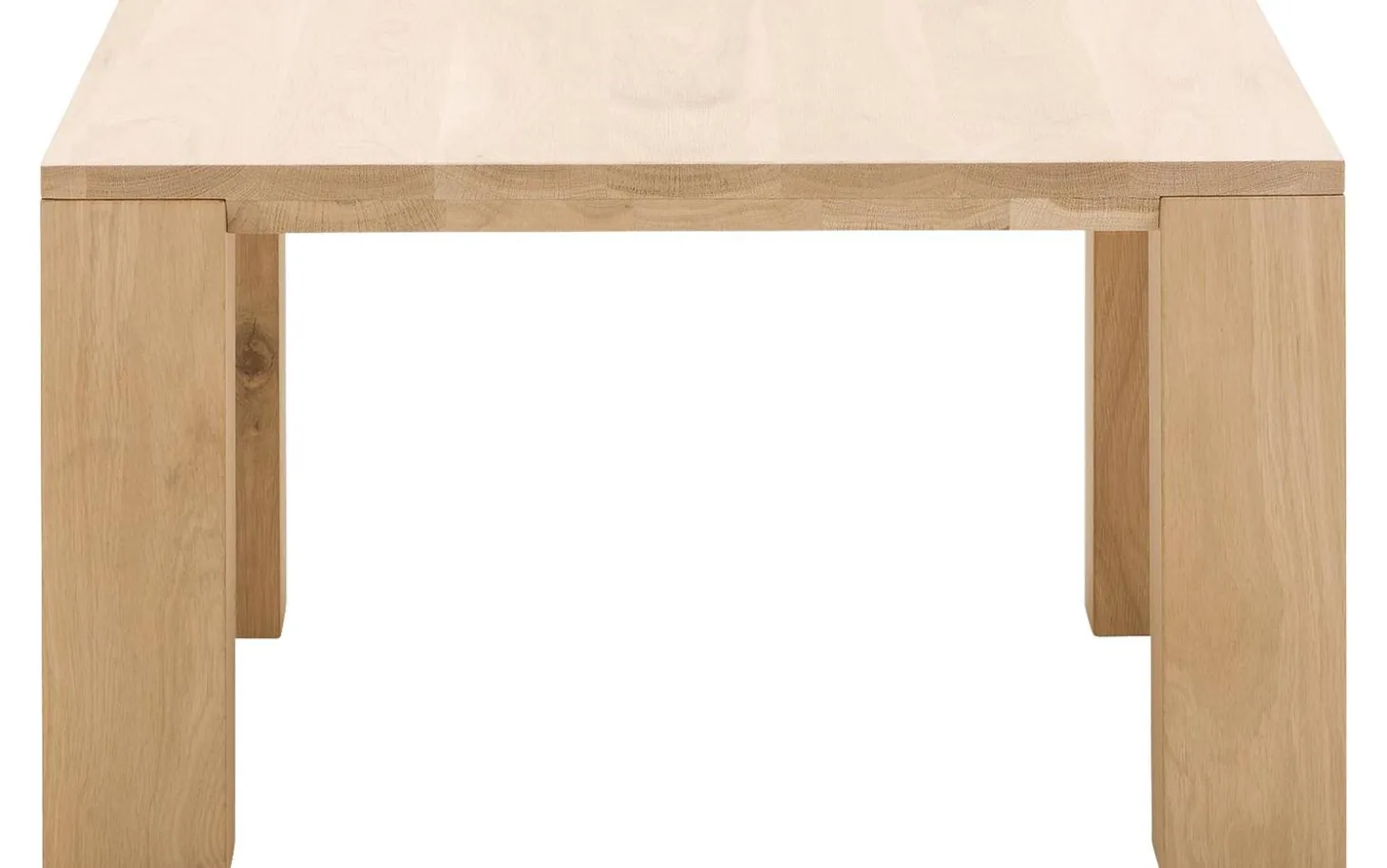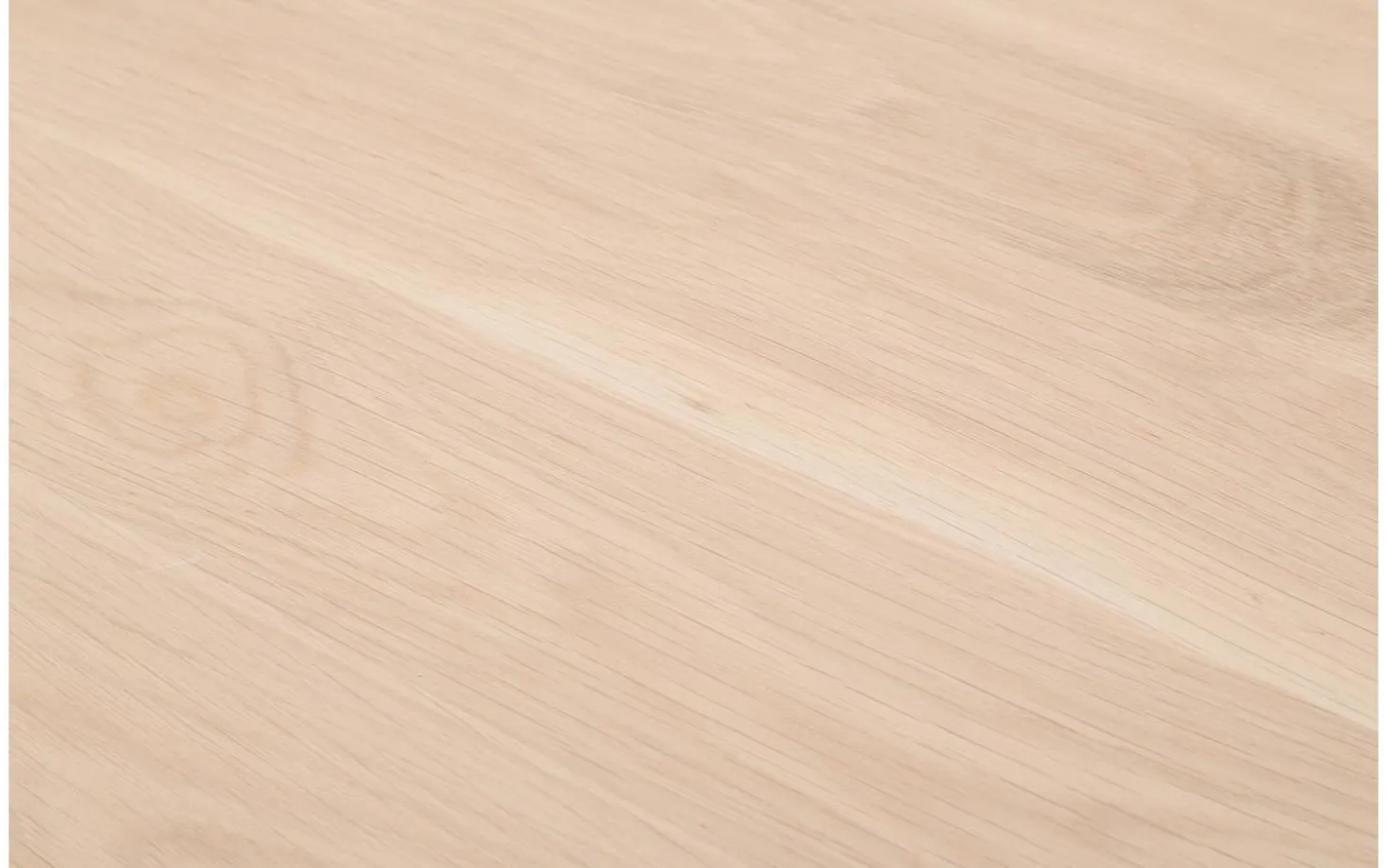 Die Tischplatte ist aus massivem Eichenholz in einem hellen Naturton gefertigt. Die Soft-Touch-Lackschicht schützt vor Ringen und Kratzern, während die Holzmaserung sichtbar und fühlbar bleibt für eine authentische Ausstrahlung.