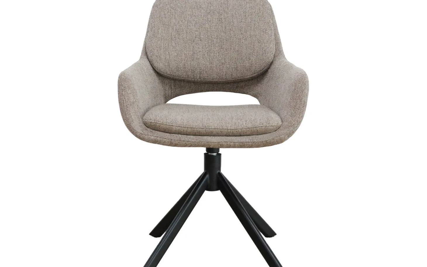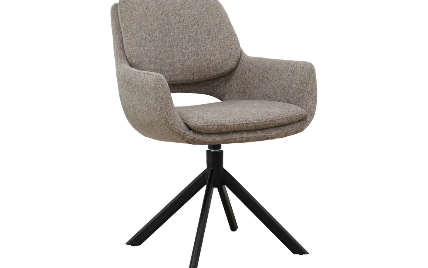 Bekijk eetkamerstoel Daisy met armleuning. Deze bruine eetkamerstoel combineert modern design met praktisch comfort. De fijn geweven taupe stof geeft de stoel een warme en tijdloze uitstraling. Dankzij de 360 graden draaibare poot met return functie schuif je gemakkelijk aan en sta je moeiteloos weer op na het eten.