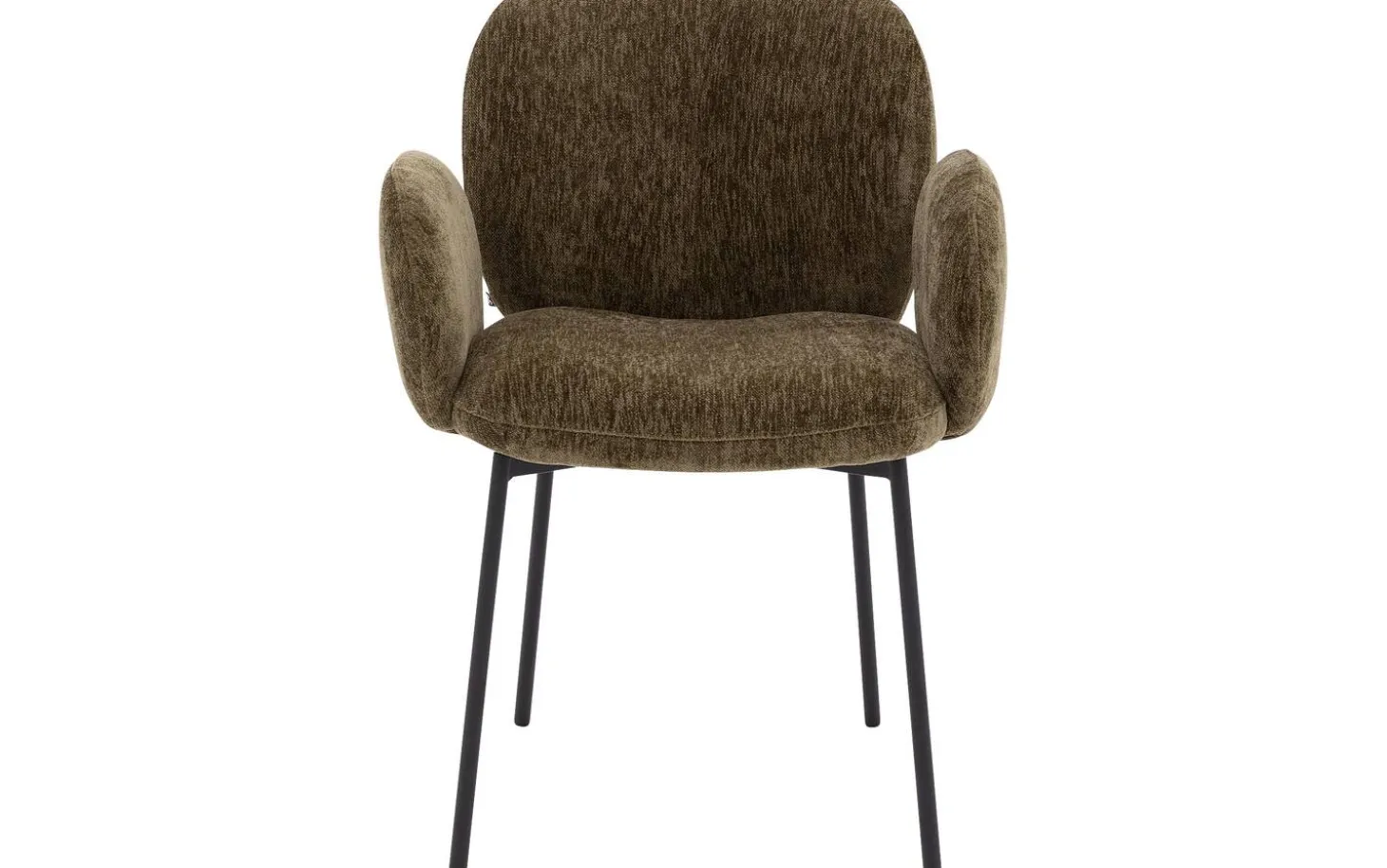 Der grüne Esszimmerstuhl Eller mit Armlehne bietet eine stilvolle Ergänzung für Ihr Esszimmer. Dieser feingewebte Stuhl aus Stoff zieht mit seinem modernen Design und seiner luftigen Ausstrahlung sofort die Aufmerksamkeit auf sich. Das schwarze Metallgestell verleiht dem Stuhl nicht nur Stabilität, sondern auch einen zeitgemäßen Look, der zu verschiedenen Einrichtungsstilen passt. Die grüne Polsterung fügt Ihrem Esszimmer eine frische, natürliche Note hinzu und sorgt für eine warme Atmosphäre während gemütlicher Essen.