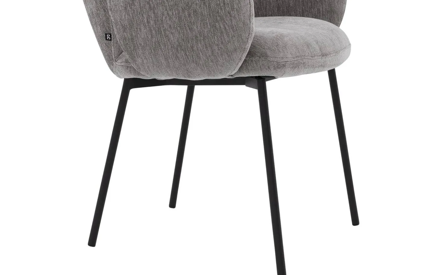 Das schwarze, pulverbeschichtete Metallgestell bildet einen schönen Kontrast zur taupefarbenen Polsterung und setzt ein stilvolles Akzent. Die feste Polsterung sorgt für einen klaren und modernen Look, der gut zu zeitgenössischen Interieurs passt. Durch die luftige Ausstrahlung ist dieser Stuhl auch perfekt für kleinere Räume geeignet.