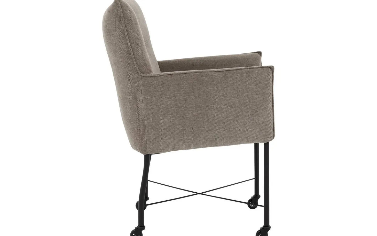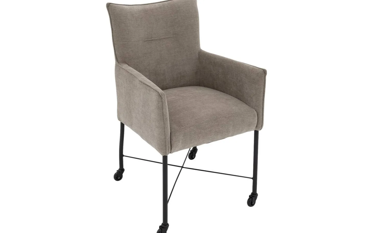 Die praktischen Rollen machen diesen Esszimmerstuhl besonders funktional. Sie rücken mühelos an den Tisch und wieder weg während des Essens oder wenn Sie den Boden reinigen möchten. Die Armlehnen bieten zusätzliche Stütze und Komfort, besonders während längerer Unterhaltungen mit Familie und Freunden.