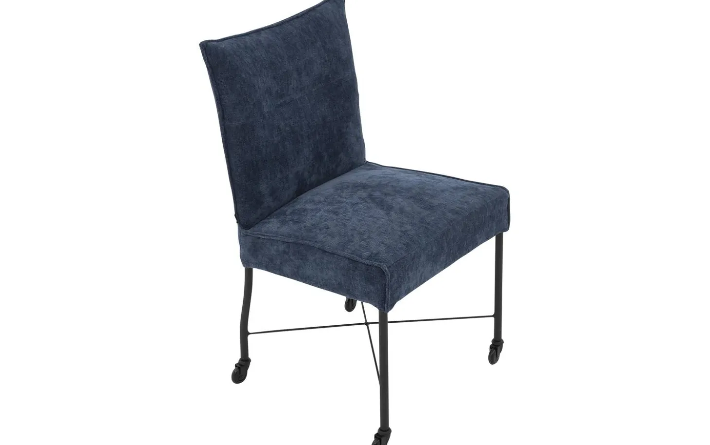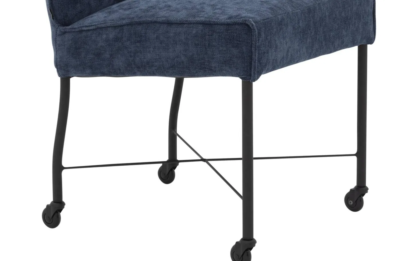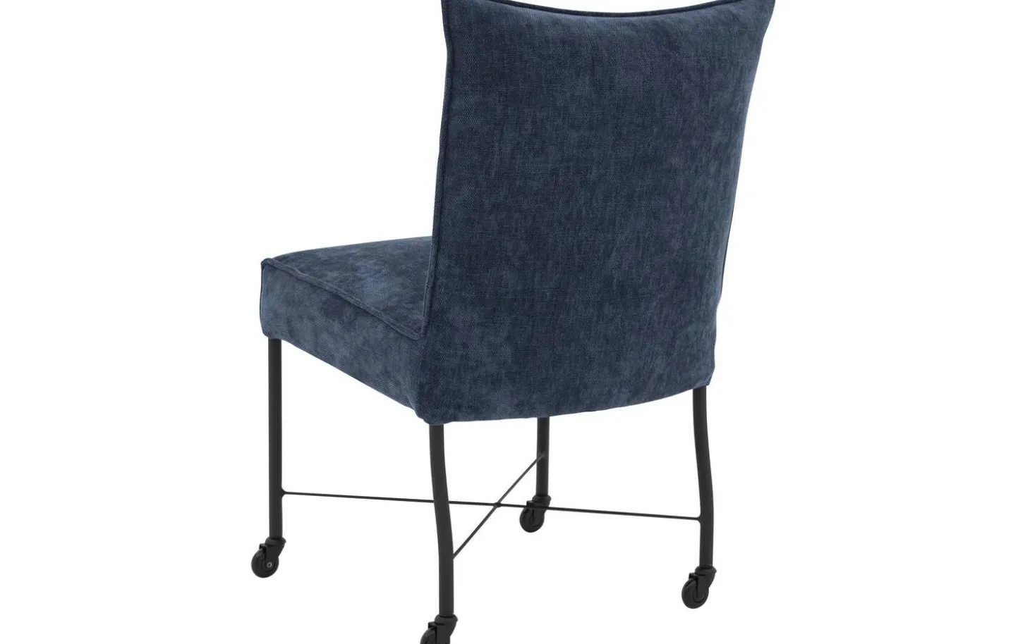 Endlos tafeln mit dem blauen Esszimmerstuhl Erik ohne Armlehne. Dieser stilvolle Stuhl aus fein gewebtem dunkelblauem Stoff bringt moderne Eleganz in Ihr Esszimmer. Die praktischen Skaterrollen machen es leicht, an den Tisch zu rollen und wieder aufzustehen – ideal während eines Dinners oder einer Party. Mit seinem modernen Design ist der Stuhl Erik eine vielseitige Wahl für Ihren Esstisch, an dem Sie stundenlang zusammensitzen können.