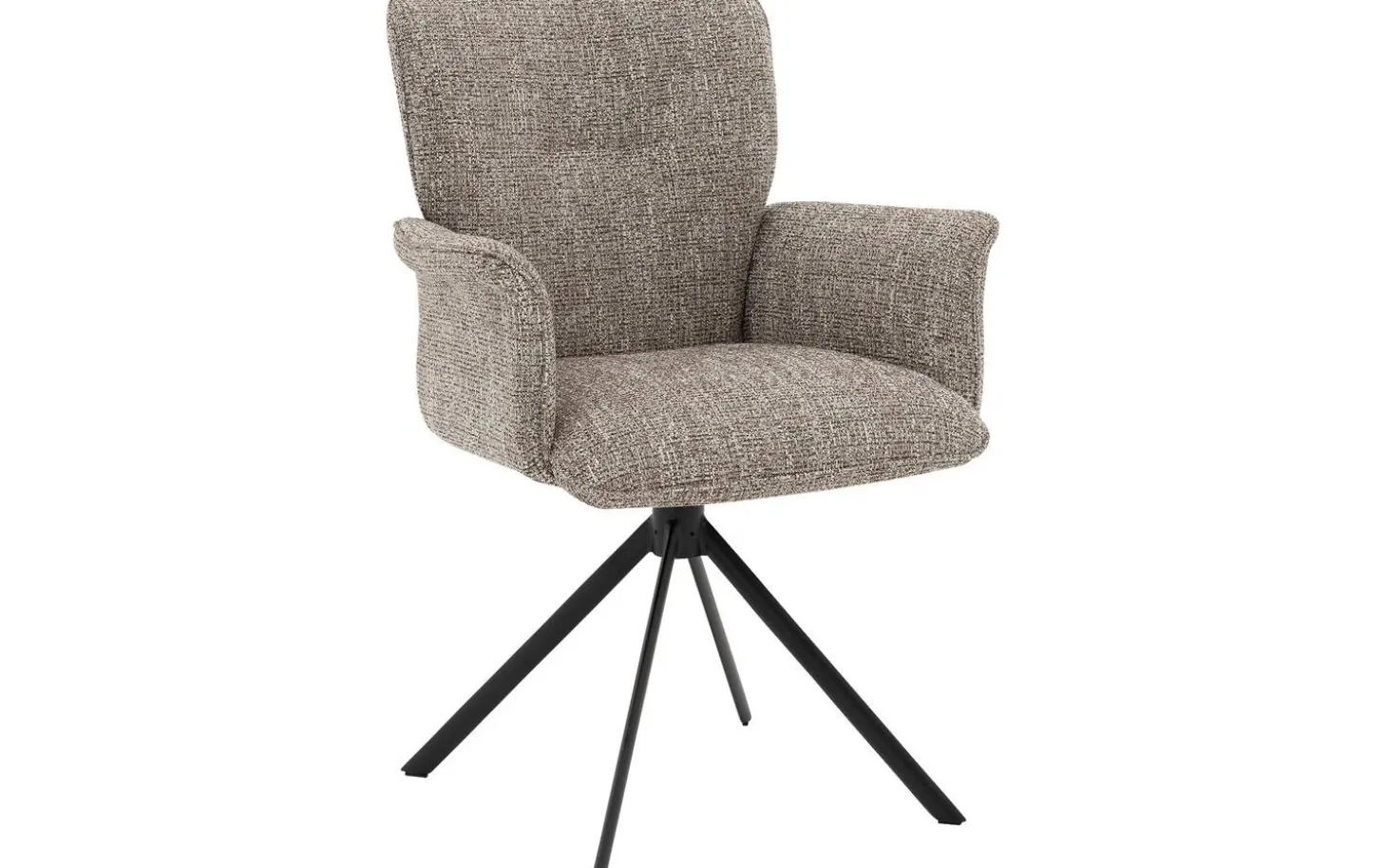 Entdecken Sie den braunen Esszimmerstuhl Hermes mit Armlehne. Dieser Stuhl kombiniert trendiges Design mit herrlichem Sitzkomfort dank der stilvollen Sitzschale, die mit einer subtilen Steppung in der Rückenlehne versehen ist. Genießen Sie zusätzliche Bewegungsfreiheit mit dem drehbaren Sternfuß und machen Sie diesen Stuhl zu einem echten Blickfang in Ihrem Essbereich. Dank der 360-Grad-Drehfunktion mit Rückholfunktion können Sie leicht an den Tisch heran- und wieder wegfahren.