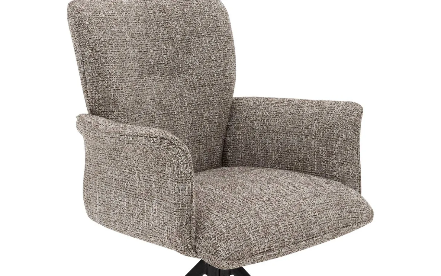 Das schwarze Untergestell mit Pulverbeschichtung bildet einen schönen Kontrast zur braunen Bezugspolsterung und verleiht dem Stuhl eine zeitgemäße Ausstrahlung. Das Sterngestell sorgt nicht nur für Stabilität, sondern ermöglicht auch die Drehbewegung, was diesen Esszimmerstuhl für den täglichen Gebrauch besonders funktional macht.