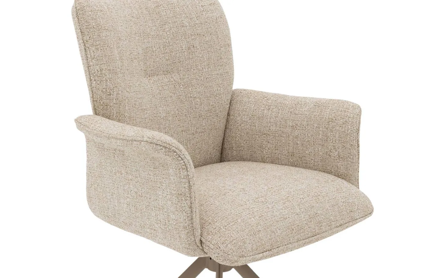 Die leichte, pulverbeschichtete Oberfläche im Naturton des Sternfußgestells bildet eine harmonische Einheit mit dem Bezug im Naturton. Diese Kombination sorgt für eine luftige und frische Ausstrahlung, die perfekt in moderne und skandinavische Einrichtungen passt. Der Stuhl ist 360° drehbar mit einer praktischen Rückholfunktion, wodurch der Stuhl immer ordentlich in die Ausgangsposition zurückkehrt.