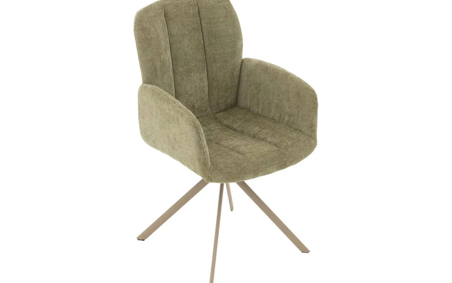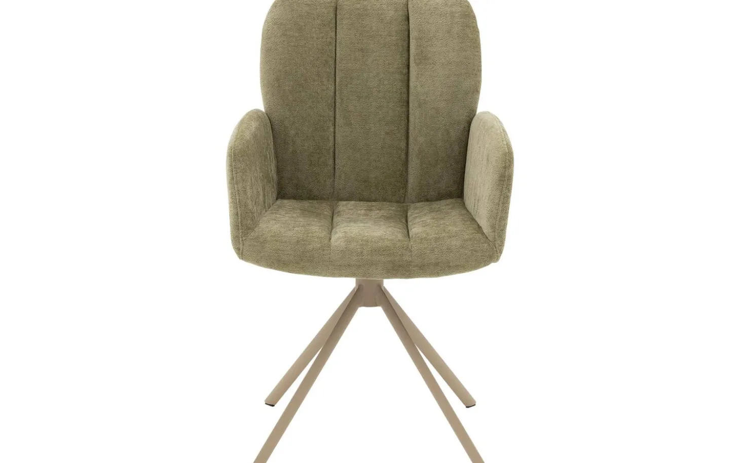 Der grüne Esszimmerstuhl Hestia mit Armlehne bringt trendiges Design in Ihr Esszimmer. Dieser stilvolle Stuhl aus Stoff in Pistaziengrün fällt sofort durch seine elegante Sitzschale mit vertikalen Nähten auf, die einen verspielten Akzent setzen. Dank des 360° drehbaren Sternfußes mit Rückholfunktion haben Sie beim Essen alle Bewegungsfreiheit. Der Fuß im Naturton bildet einen wunderschönen Kontrast zum frischen grünen Stoff, was diesen Esszimmerstuhl zu einem echten Blickfang in jedem Esszimmer macht.