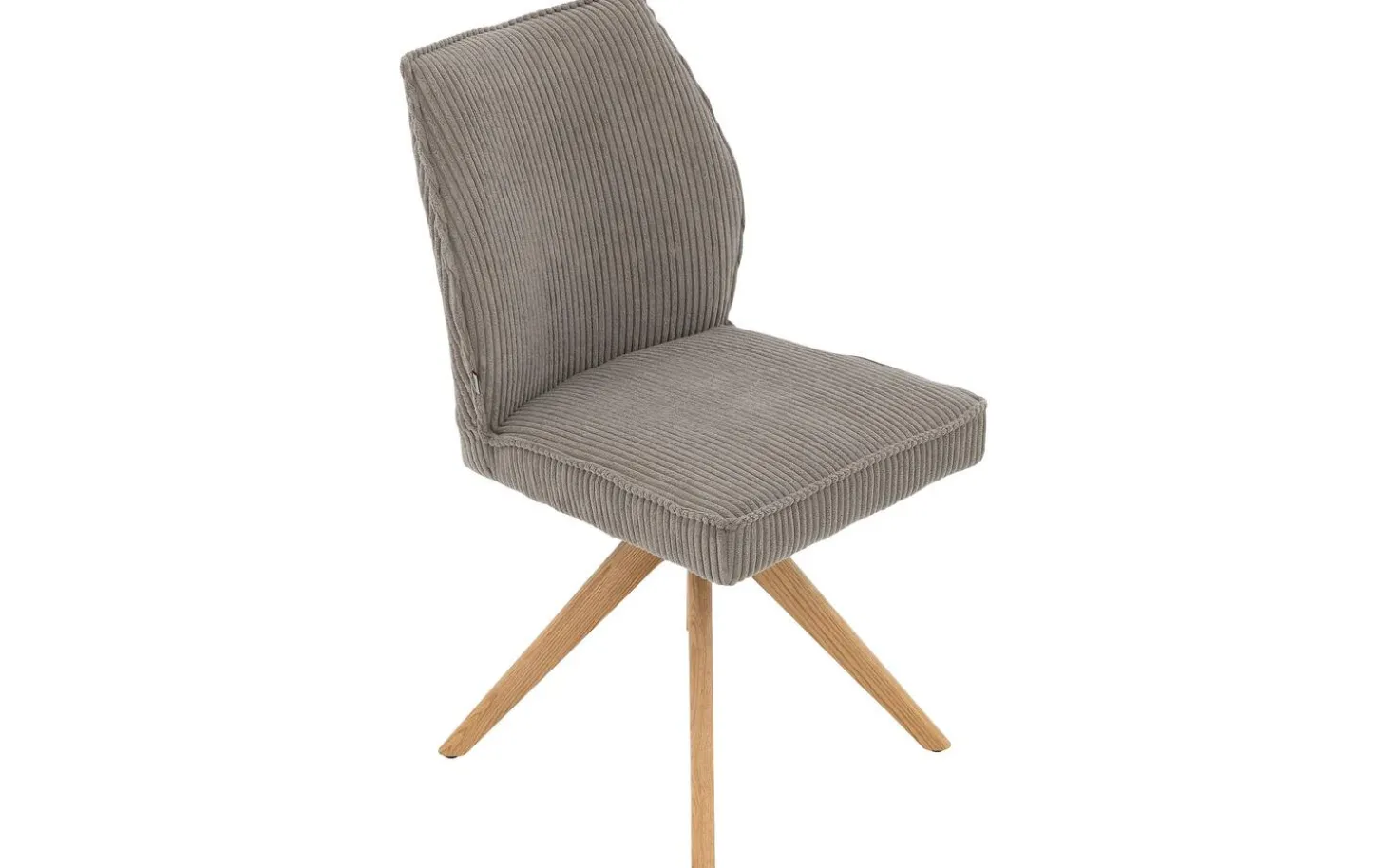 Der graue Esszimmerstuhl Laurens ohne Armlehne strahlt Komfort und Stil in Ihrem Esszimmer aus. Dieser hellgraue Esszimmerstuhl aus Rippenstoff ist um 360 Grad drehbar mit praktischer Rückholfunktion, wodurch Sie sich bequem hinsetzen und aufstehen können. Die warme Ausstrahlung des blank lackierten Eichenholzuntergestells kombiniert wunderbar mit dem weichen Rippenstoff, perfekt für gemütliche Essen mit Freunden und Familie.